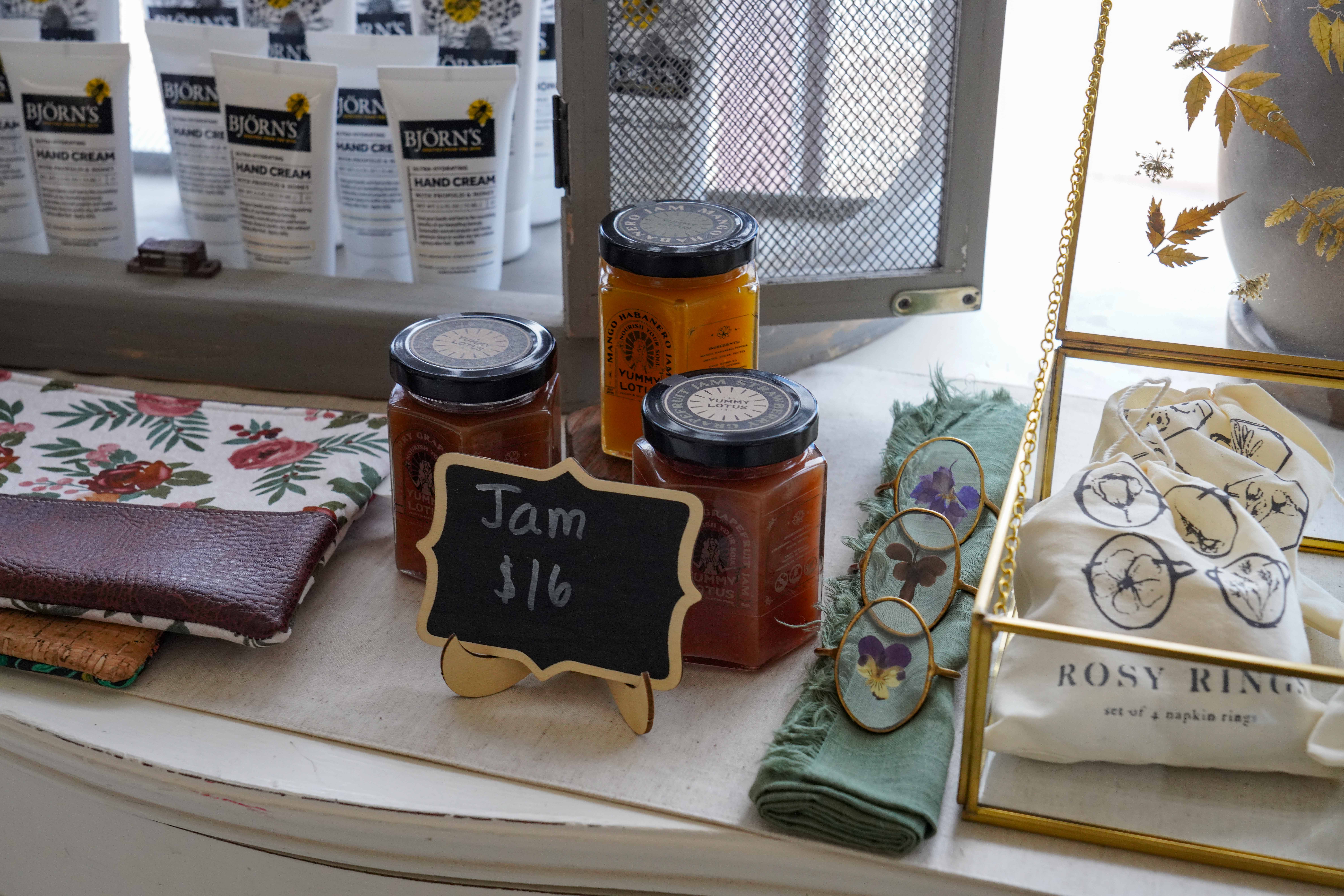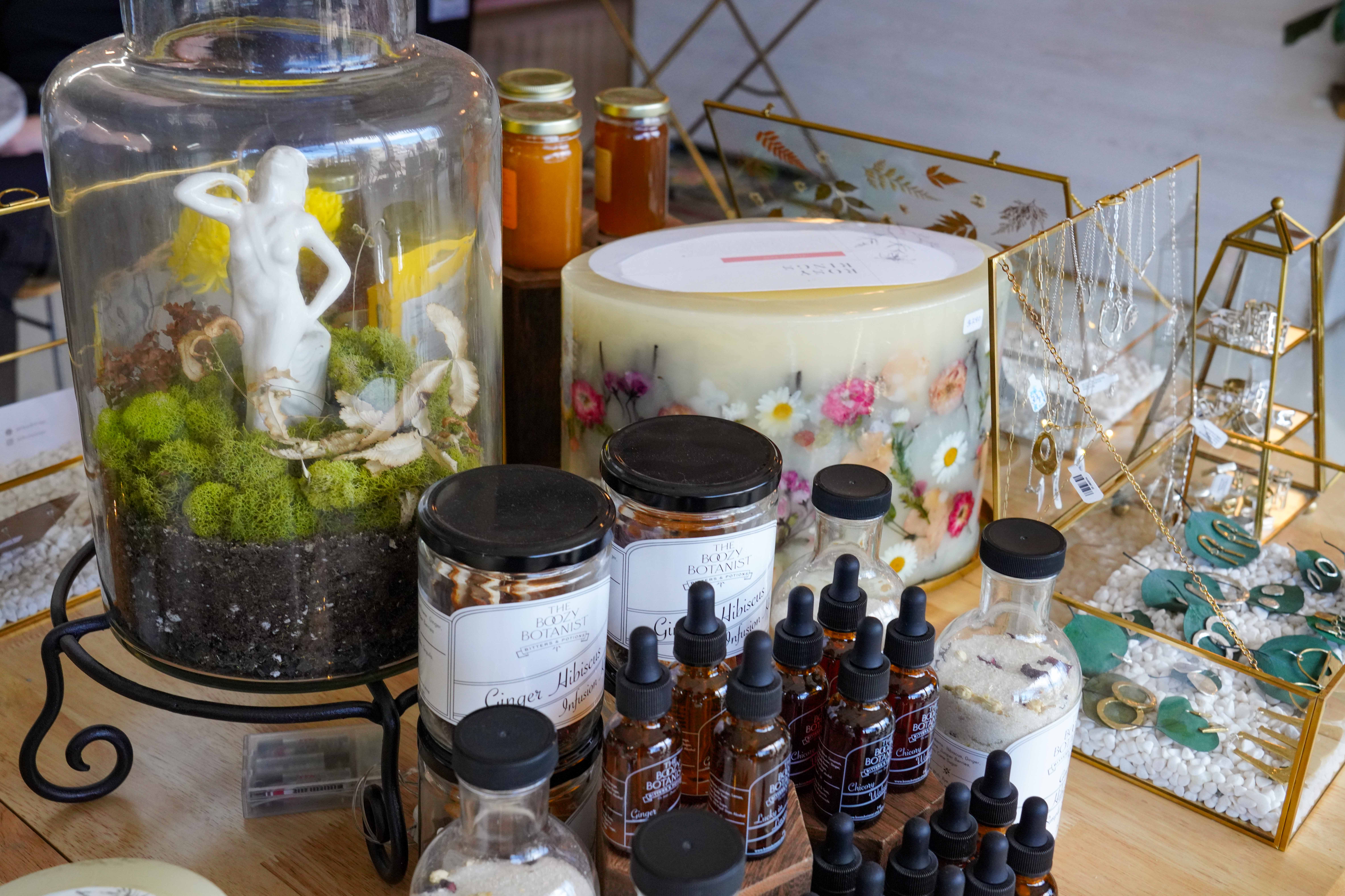 Food and drink are just the beginning of its soothing ambiance. Ray’s shop is decorated in a way that also initiates joy. The colors of emerald green and pale pink evoke relaxation, cemented by its cozy seating area and simple bookshop. The site is also home to various products from mostly women-owned and local businesses. Goods including botanical-themed jewelry, honey, jam, candles and bitters are for sale among the many inspiring plant arrangements. Ray also hosts different events like flower pressing workshops, open-mic poetry, pie nights and Friendsgiving, illustrating that she never fails to uplift her community.