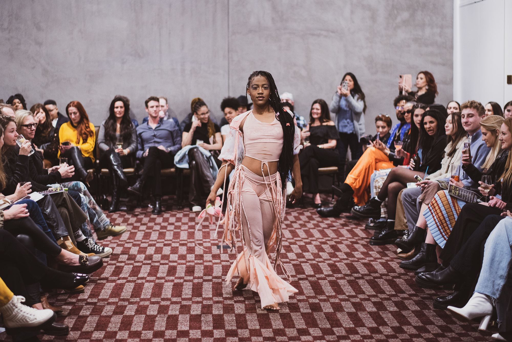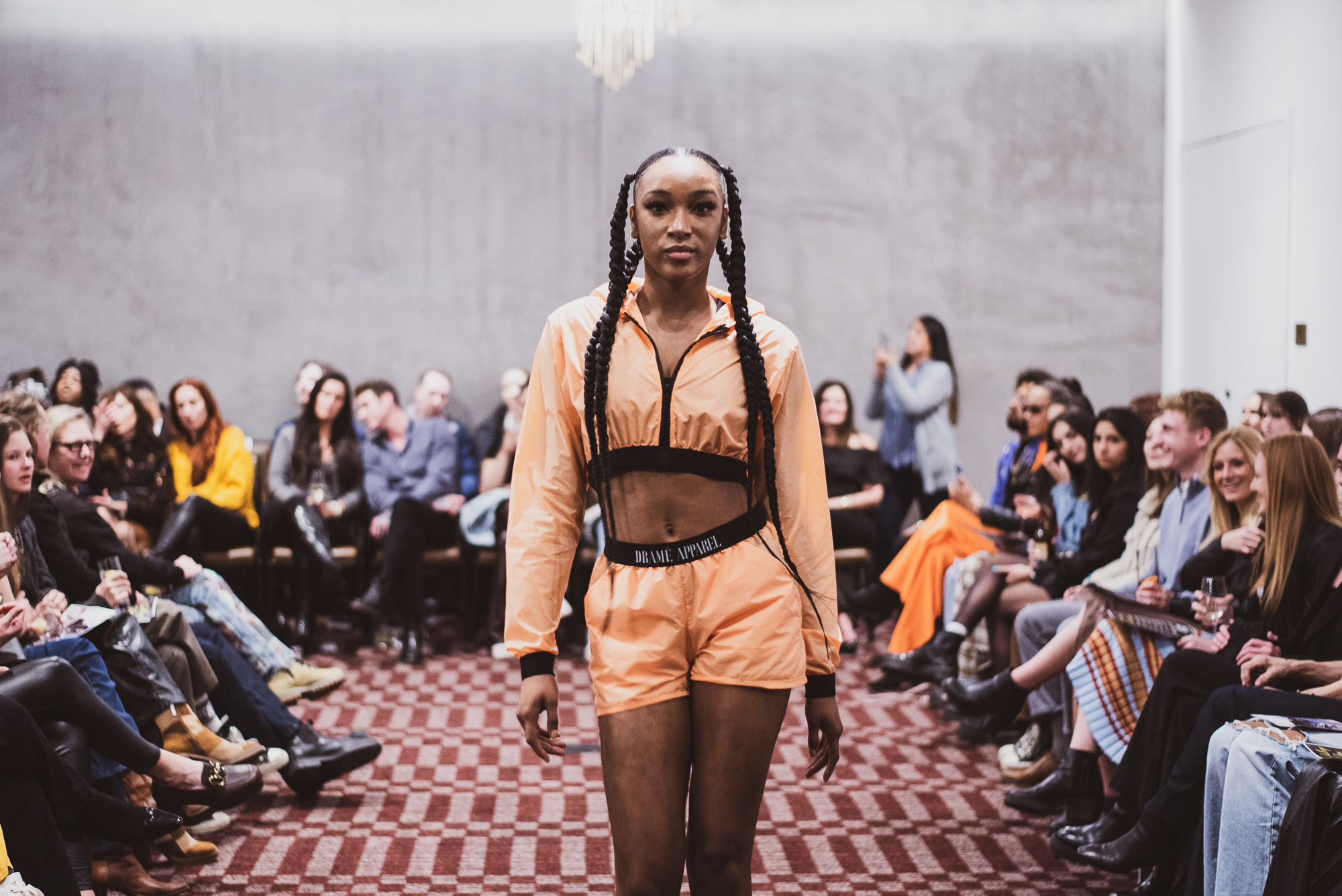 Spring came early for designer Jaida Fatou’s collection. Filled with heart shaped cutouts, laced up garments and pastel colors, each look had a streetwear undertone with an overall classy feeling. Each look had its own special detailing whether it was delicate fabric intertwined with each other or the Dramé Apparel logo on the waistband of a band and top, it’s apparent just how much thought went into each look. Combined with hairstylist Kymmy Perry-Mazion’s sleek ponytails and braids and makeup artist Britney Ware’s bold eye, helped create some of the best sexy but playful looks.