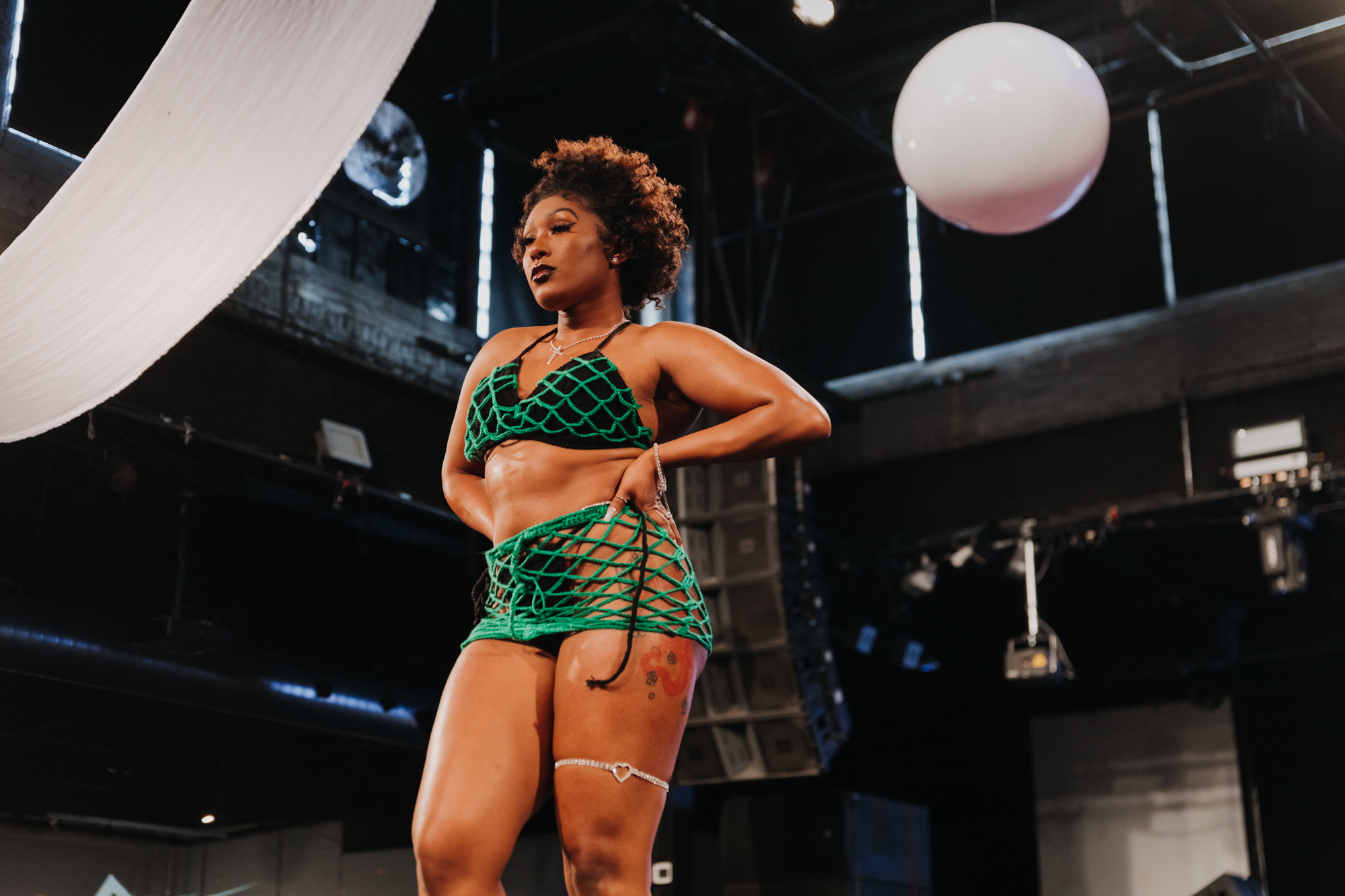 Handcrafted crochet pieces were the star of Lavish-Queen Fabrics’ collection. Each design was a bright color that had unique detailing and intricate designs. Though Lavish-Queen favored two piece sets, every look had its own flair. Whether it be a chain interwoven or two colors stitched together, it was easily one of the most creative collections. The sets were a fan favorite with bucket hats as the collection finale.