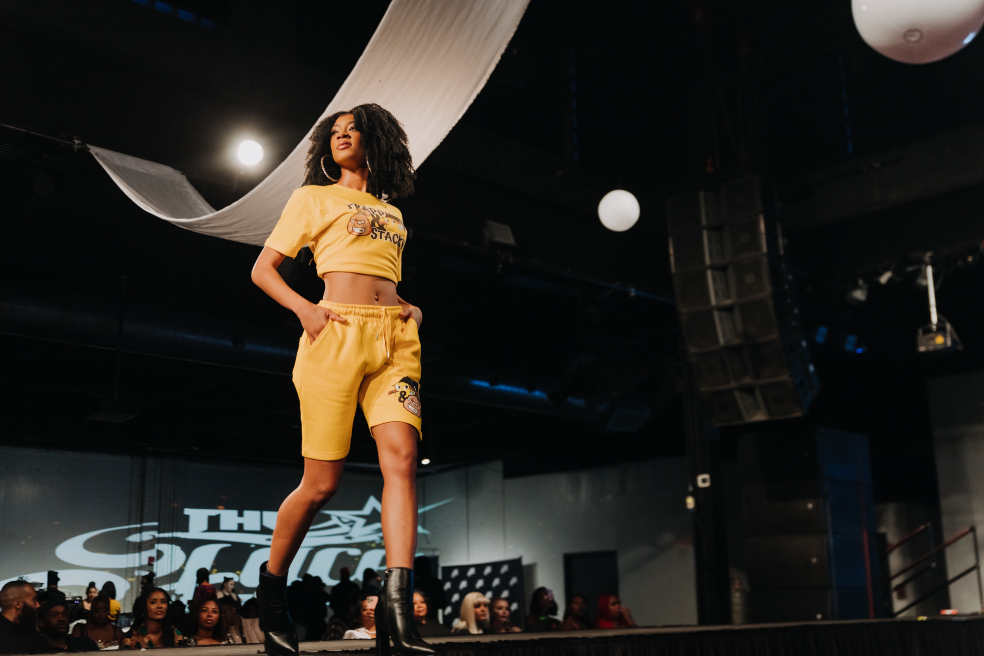 With matching sweatsuits on the rise, it’s no surprise that TrappnStackn Apparel took this trend and created its own version. Each look came in a pastel color but with a powerful message. A quote from Malcolm X, an activist for Black empowerment, is carefully painted on the pocket while the Black Lives Matter was center stage on each hoodie. Though the idea of a matching sweatsuit may seem simple, TrappnStackn Apparel takes it to a whole new level by incorporating powerful messages — it was a celebration of black excellence.