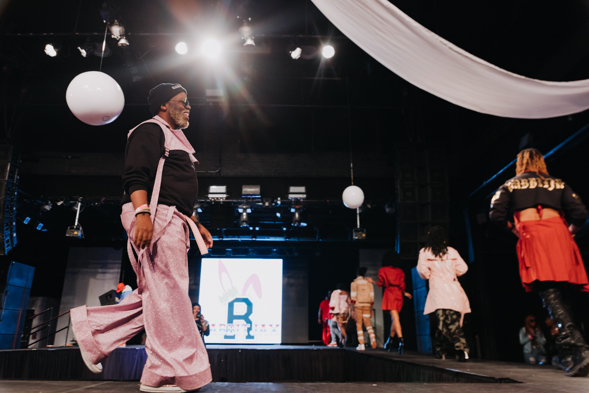Combining non gender conforming clothing with fun pinks, reds and oranges made for a flawless Rabbitjax Clothing collection. Each look was carefully structured and playful, leaving the crowd wanting more. It was also the attention to detail and exquisite layering that made this collection the most unique. Notably, as the collection shifted from one piece to another, there was a gradual shift in colors — from light pink to bright red symbolizing the beginning of a new upcoming collection, designer Ray Howard said. Playful patterns like plaid, rainbow tie dye and camouflage showed just how daring Rabbitjax Clothing can be.