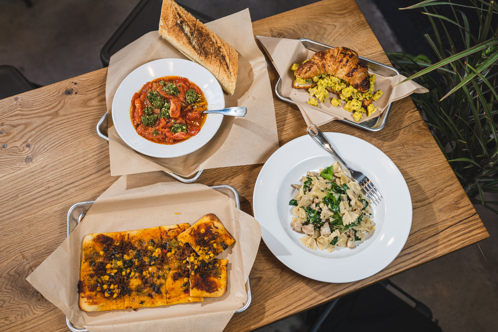 Its food is fresh, seasonal and clever. Whether grabbing on the go or chilling out for the day, a delicious meal or snack is always promised. For a warming eat, go for the roasted tomatoes & goat cheese pesto ($11) served with a warm, toasted baguette. The Southwest flatbread is a favorite on its current rotation of specials, so grab it while you can. Its Chicken Spinach Artichoke Pasta is the definition of comfort and is perfect for sharing over a bottle of wine. But the illustrious sweet treats, including its Salted Caramel Éclair and matching cake, are a highlight. Each choice is guaranteed to be rich, full of flavor and impossible to put down.