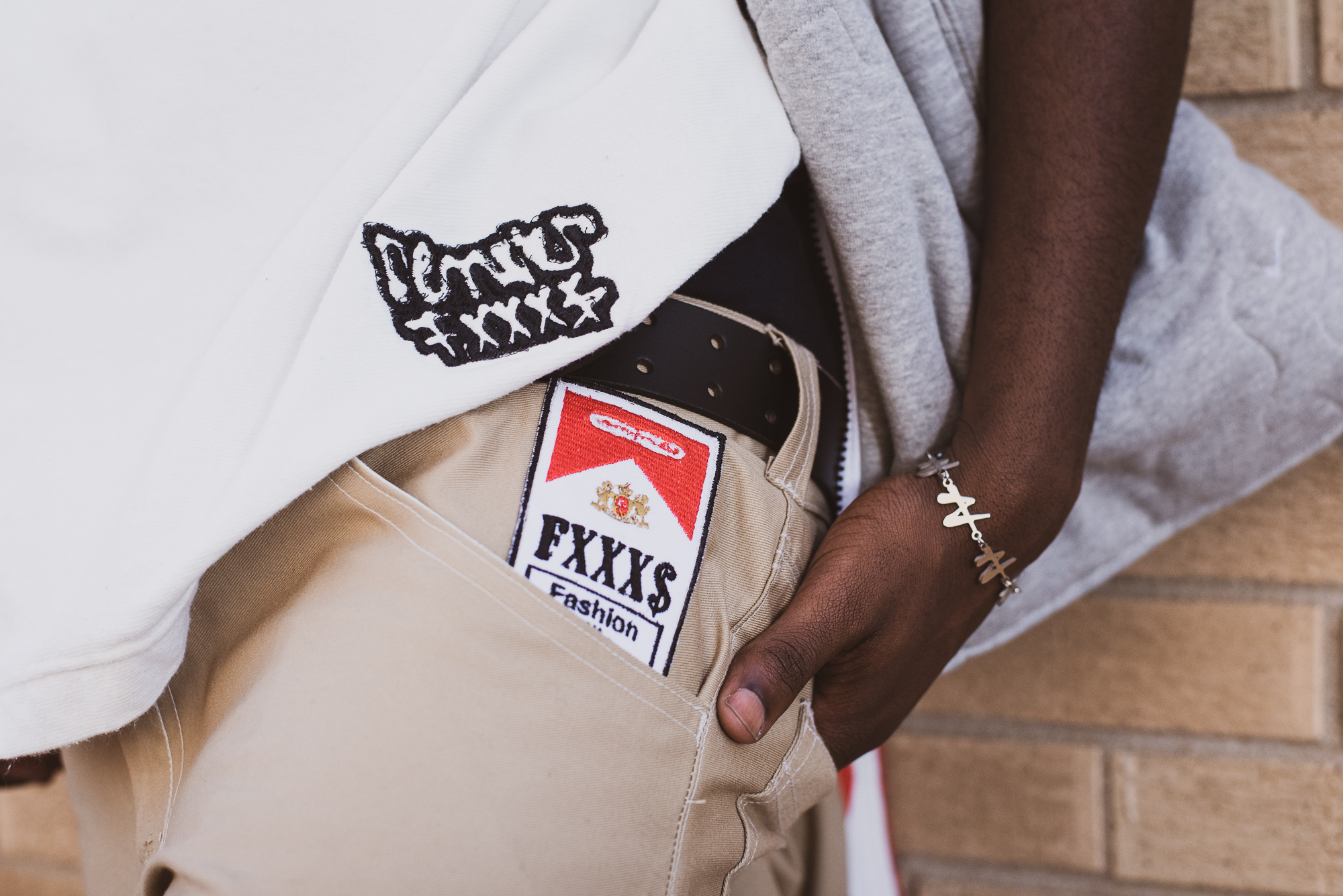 Krueger’s runway background will feature the front of a convenience store that says “FXXX$ the World” — the title of his collection. His brother is creating the music that features a skit of him walking into a convenience store, talking to the cashier who will ask,” What’s F triple x dollar sign?” and then walking out initiating the convenience store “ding,” which will signal the first model.