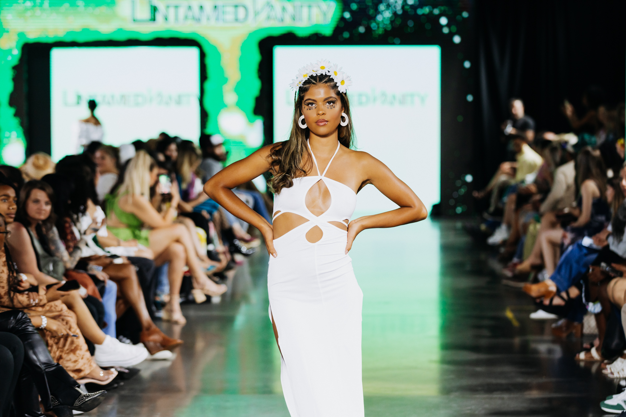 After seeing these pieces strut down the runway, the brand name speaks volumes for the collection itself. Untamed Vanity brought a classic yet modern sexiness and confidence to each model. With prime inspiration for Summer 2023 outfits, form-fitted garments were the staple for each of Shelethia Statham’s designs. Flattering cut-outs were a must for dresses both long and short. Ruching, deep necklines and bright patterns of marbling and tie-dye enhanced these simple but timeless silhouettes. Statham created Untamed Vanity in 2016, with the inspiration of wanting to highlight untamedness and boost the confidence of consumers all over the world.