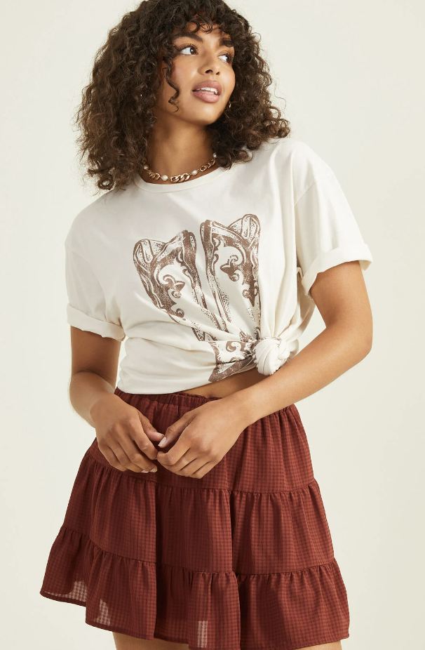 Add some Western flare to your Fourth of July holiday with a look from Altar’d State and Ida and Moon. The graphic tees from Altar’d State paired with blue jeans or shorts and cowboy boots are such a staple look.