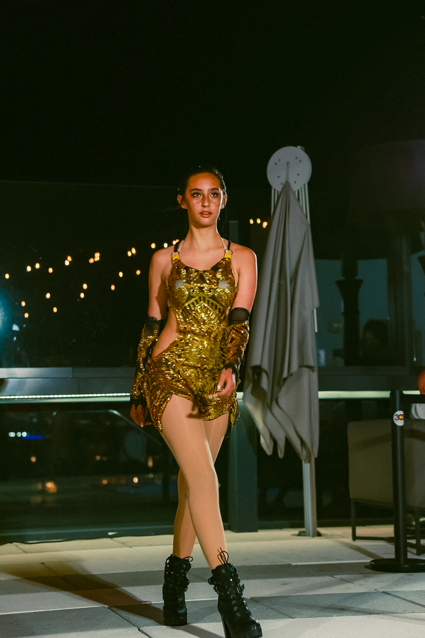 The Jacquard Hotel’s rooftop was converted into a runway of dreams against the background of a setting sun painting the Colorado sky with bright hues. This picturesque setting was ideal for rising designers to demonstrate their ability to create art and stylish creativity.
