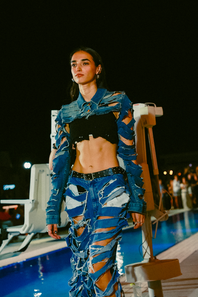 As the event began, the five designers prepared, each with their own distinct aesthetic, delivering a broad selection of clothing that blurred the lines between tradition and avant-garde. The designers’ different inspirations and points of view were reflected in the ensembles, which spanned from eco-conscious streetwear to sparkly ensembles.