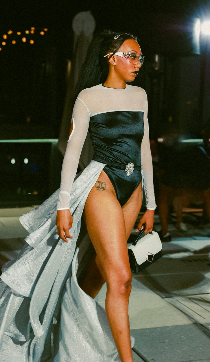 The next designer and brand was Anton LaRosa who stepped out of his comfort zone and created designs purely from black and white. As the outfits hit the runway, everybody was in awe as the models embodied the elegant and modern art that was LaRosa’s dress and skirt designs. Along with the black and white theme, the designs of the dresses were both flowy and strictly square or triangle shaped — it was the perfect combination.