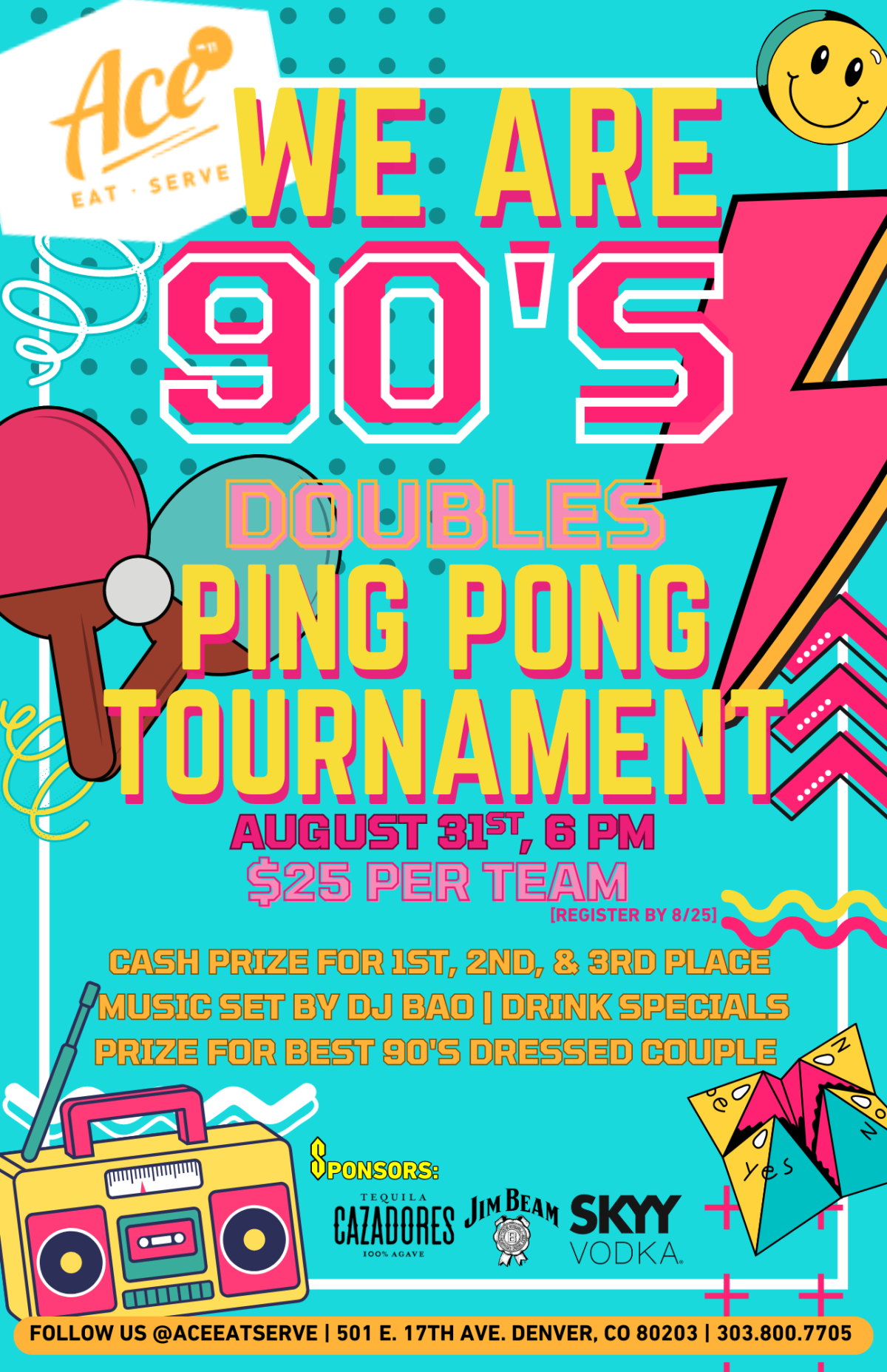 Lowdown: Want to test those ping pong skills? Register as a team to take part in the competition with an opportunity to win a cash prize. There will be music provided by DJ Bao, drink specials and don’t forget to dress on theme for a potential prize as the best 90’s dressed duo.