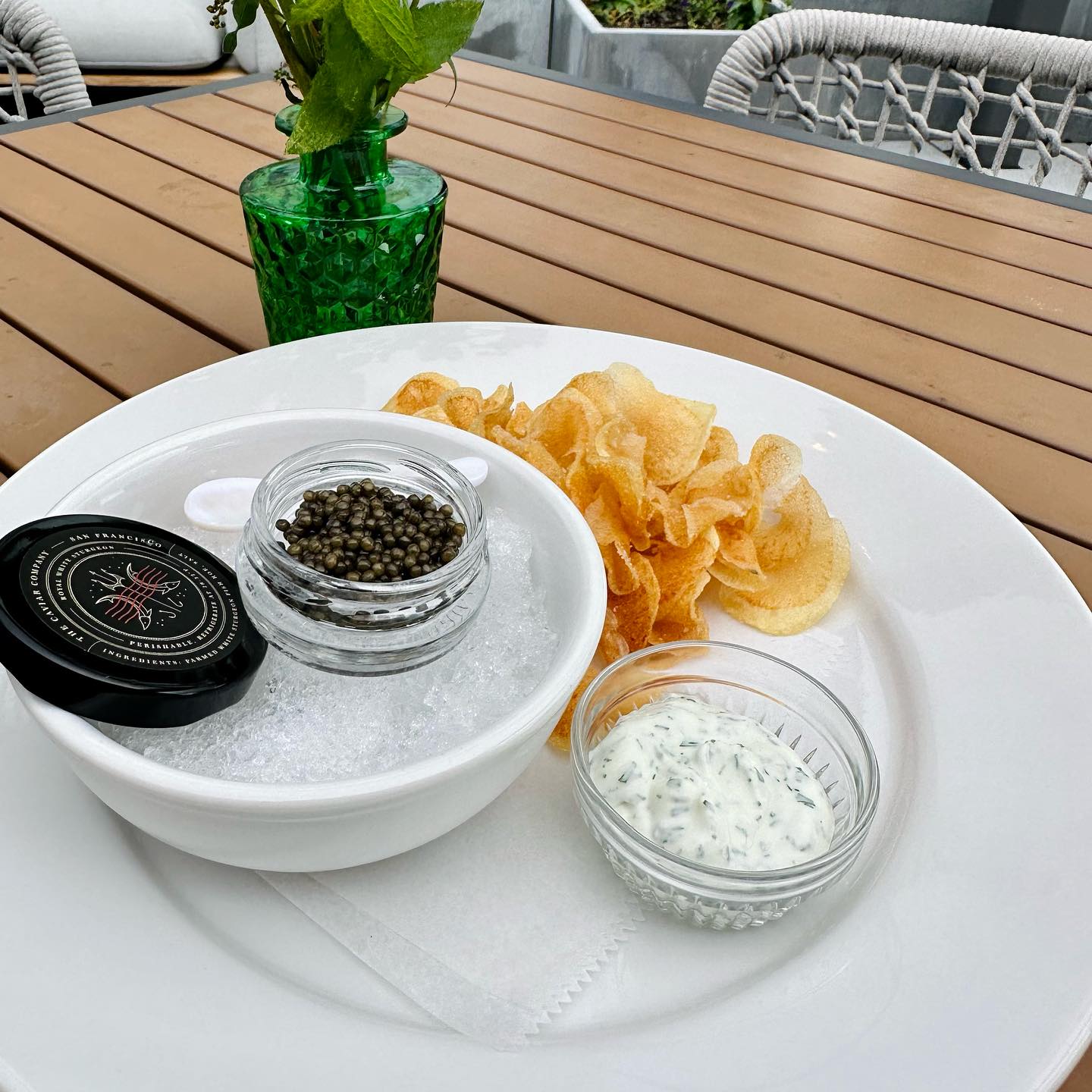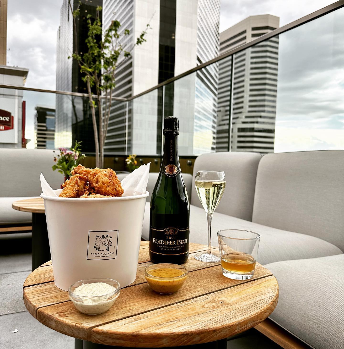 The Apple Blossom team serves elevated handheld bites to match those exalted views, with a selection of fresh seafood, raw oysters, fried chicken, vegetable snacks and more.