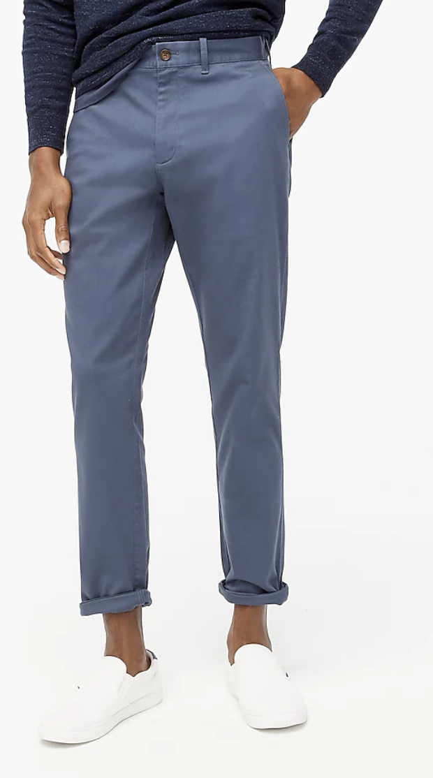 Chino’s are the perfect swap for dress pants. With comfort still in mind, chino’s provides both class and comfort, making it a great office look. Dress pants have a prominent center crease and pleats — while chinos are straight all around, giving a more laid-back but sophisticated look.