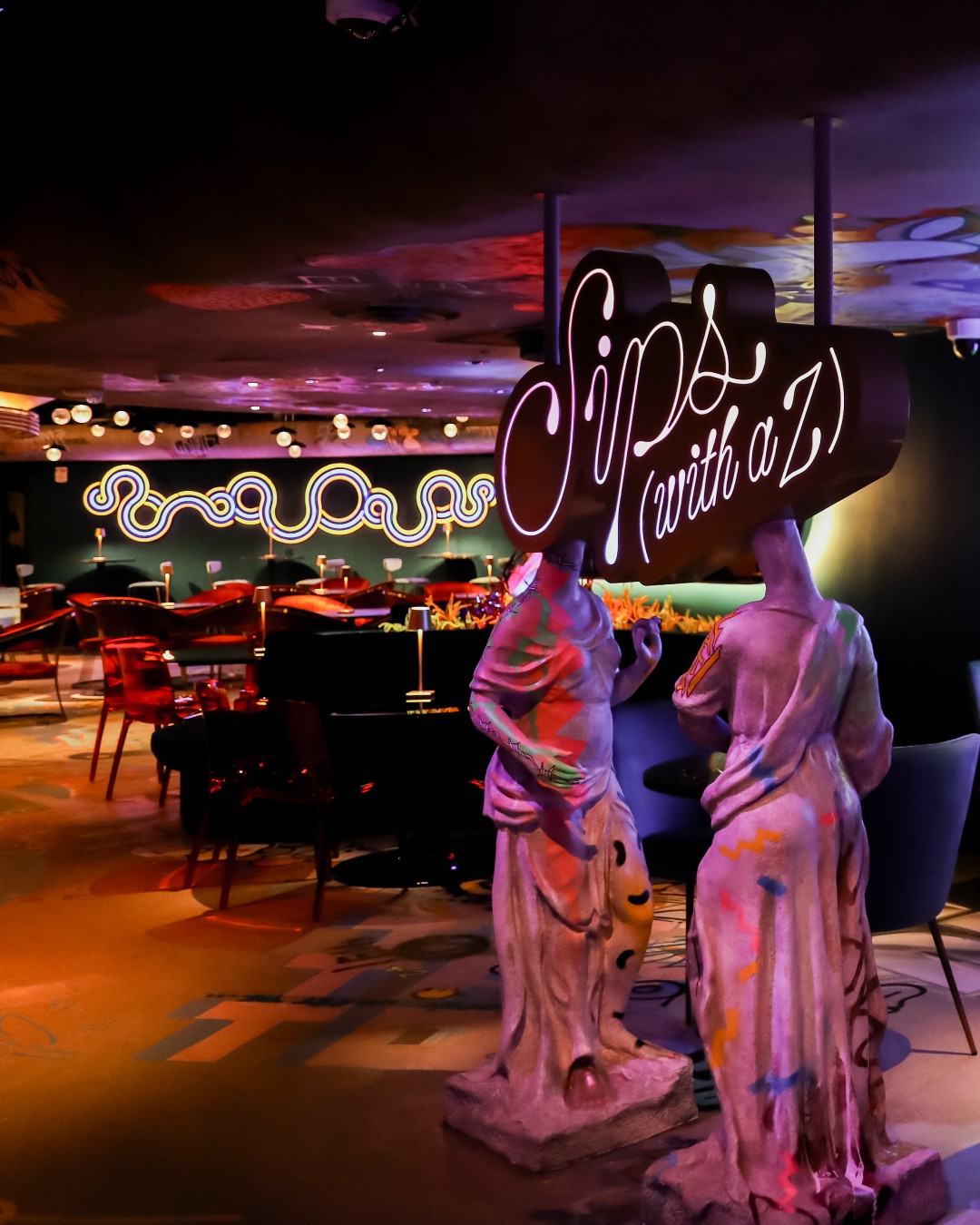 Now, you have the chance to grab a few cocktails on your layover by visiting Meow Wolf Denver’s newest executive travel lounge, Sips with a Z, located on the second floor of Convergence Station. This cosmic-themed bar wouldn’t be fit for QDOT travelers without a funky cocktail menu, shareable bites, flatbreads and sweet treats.