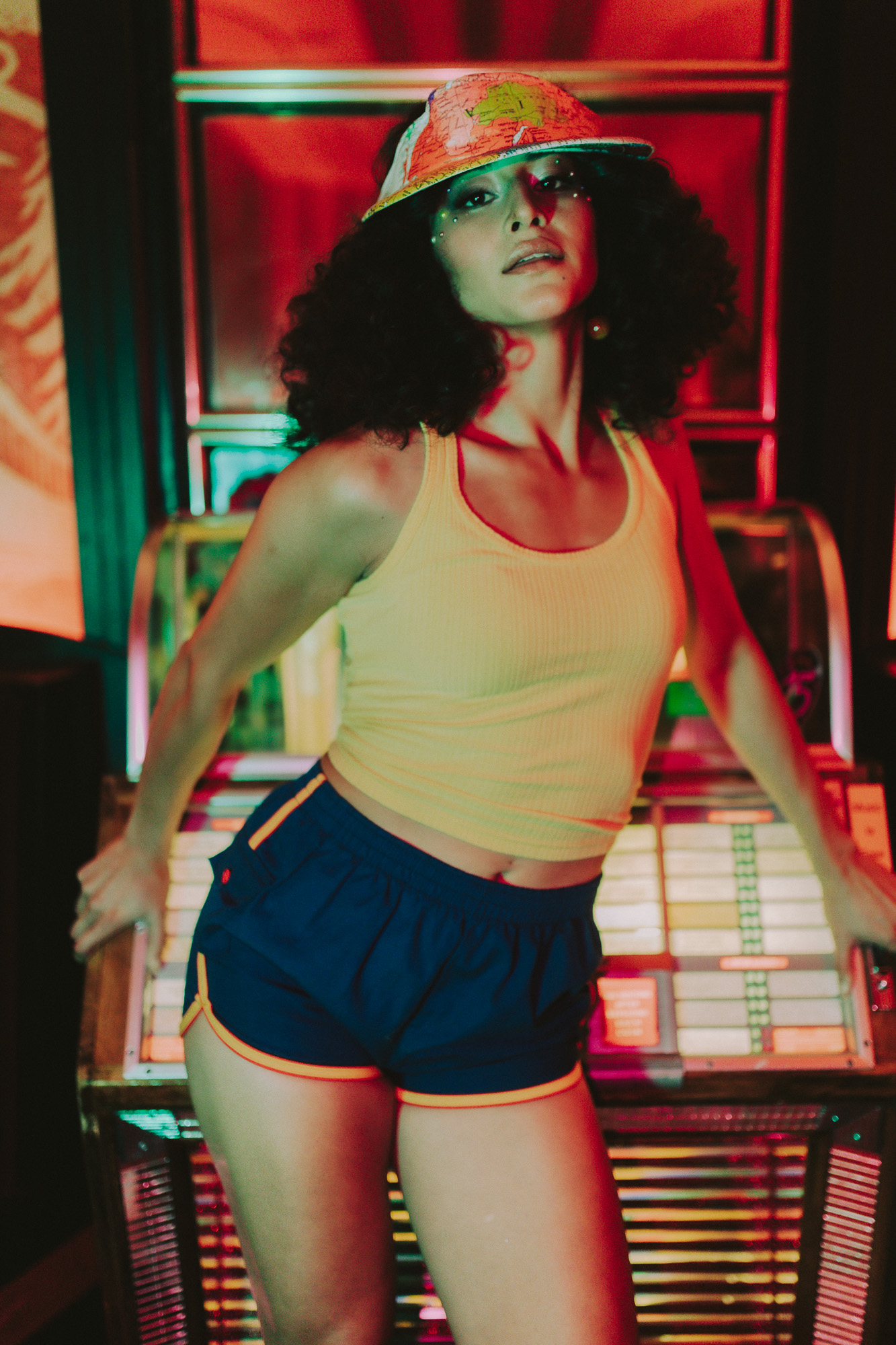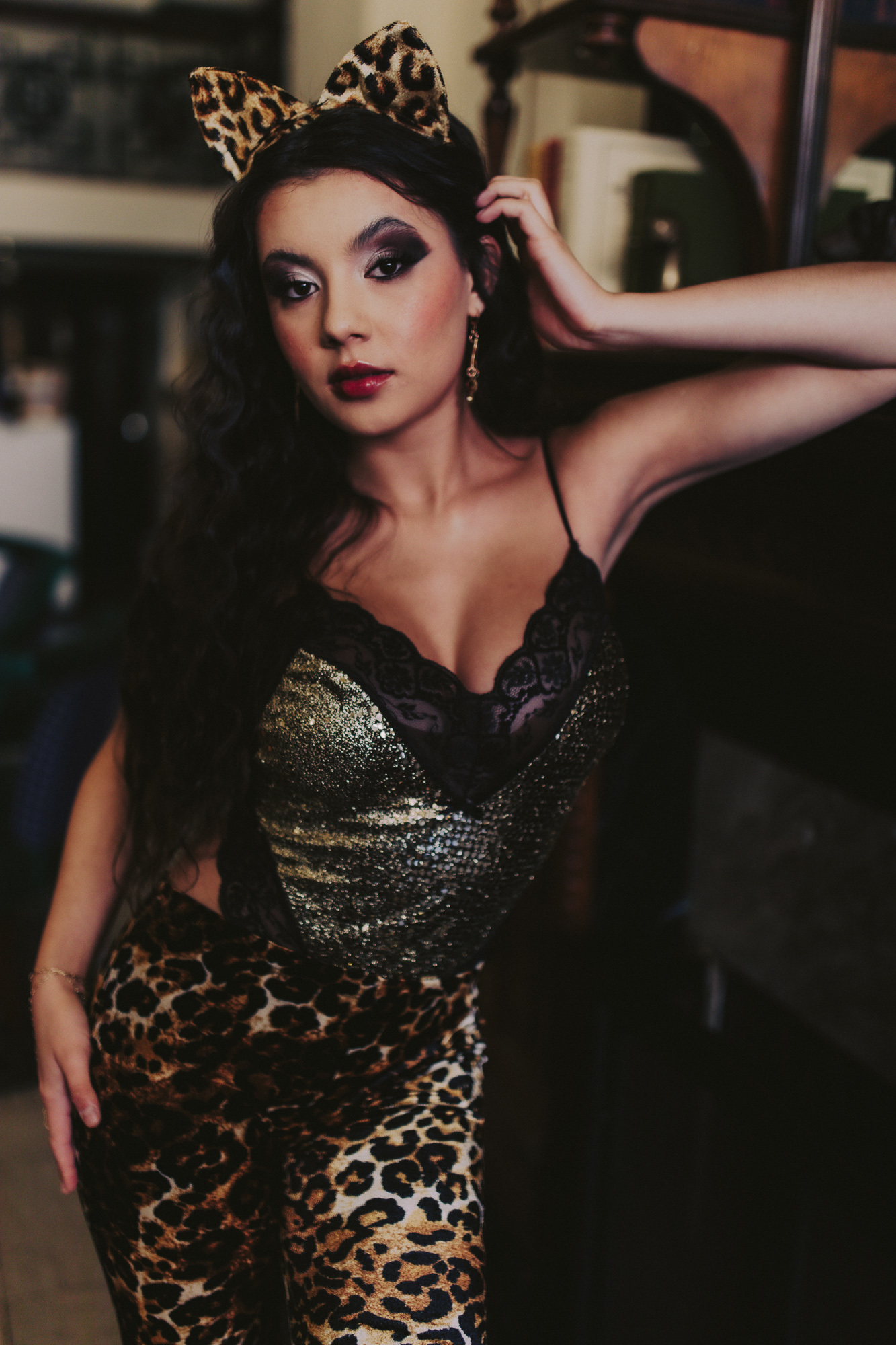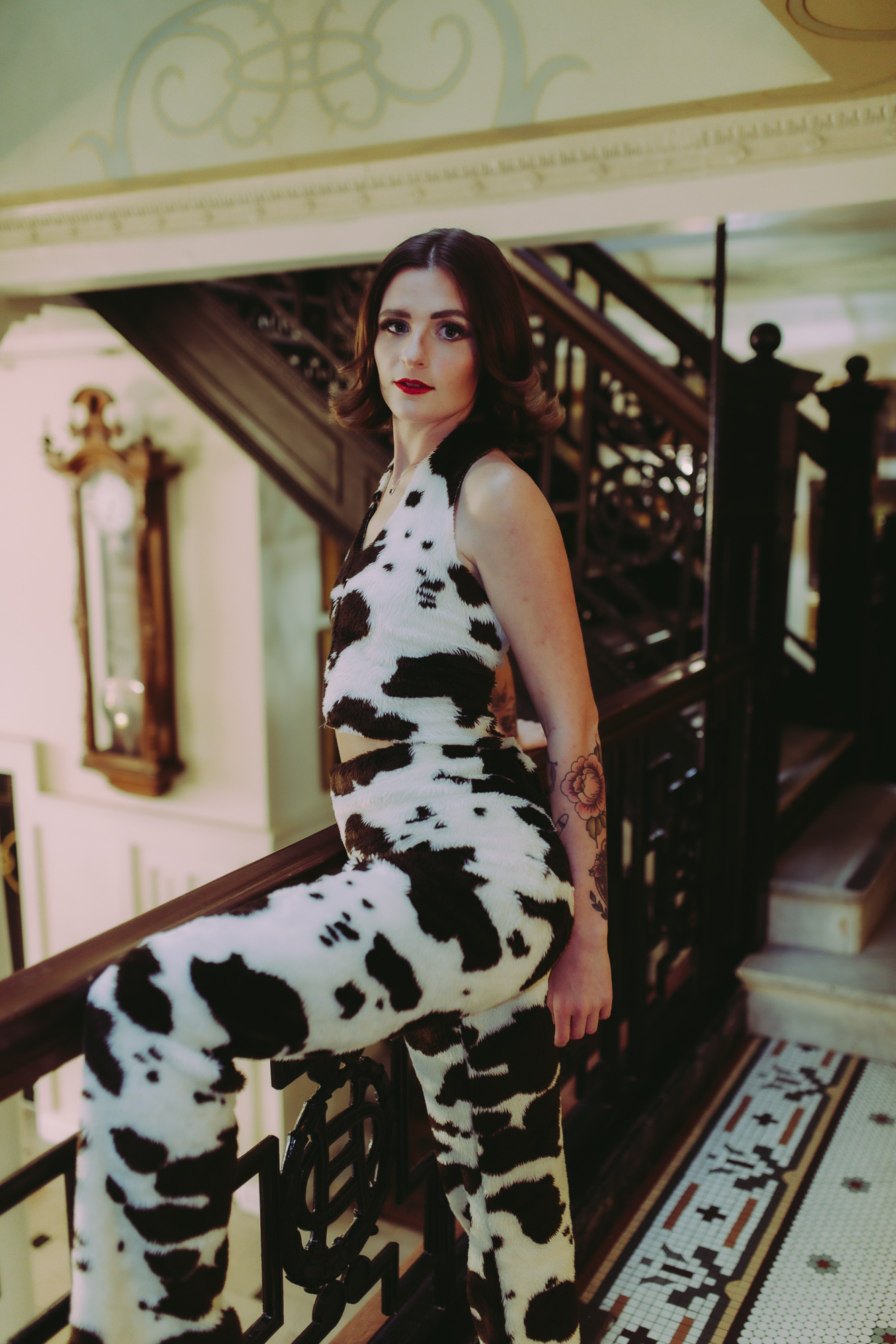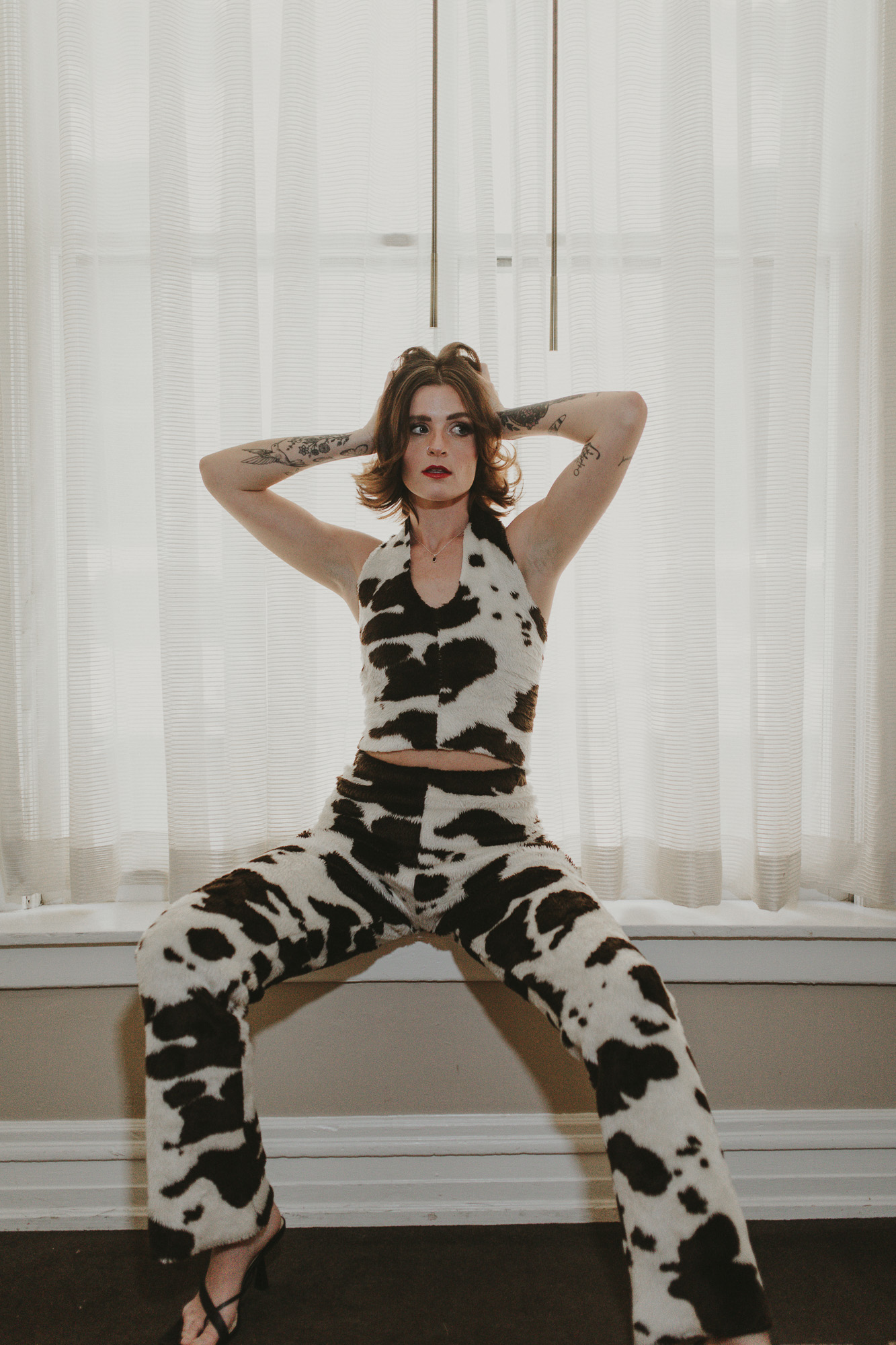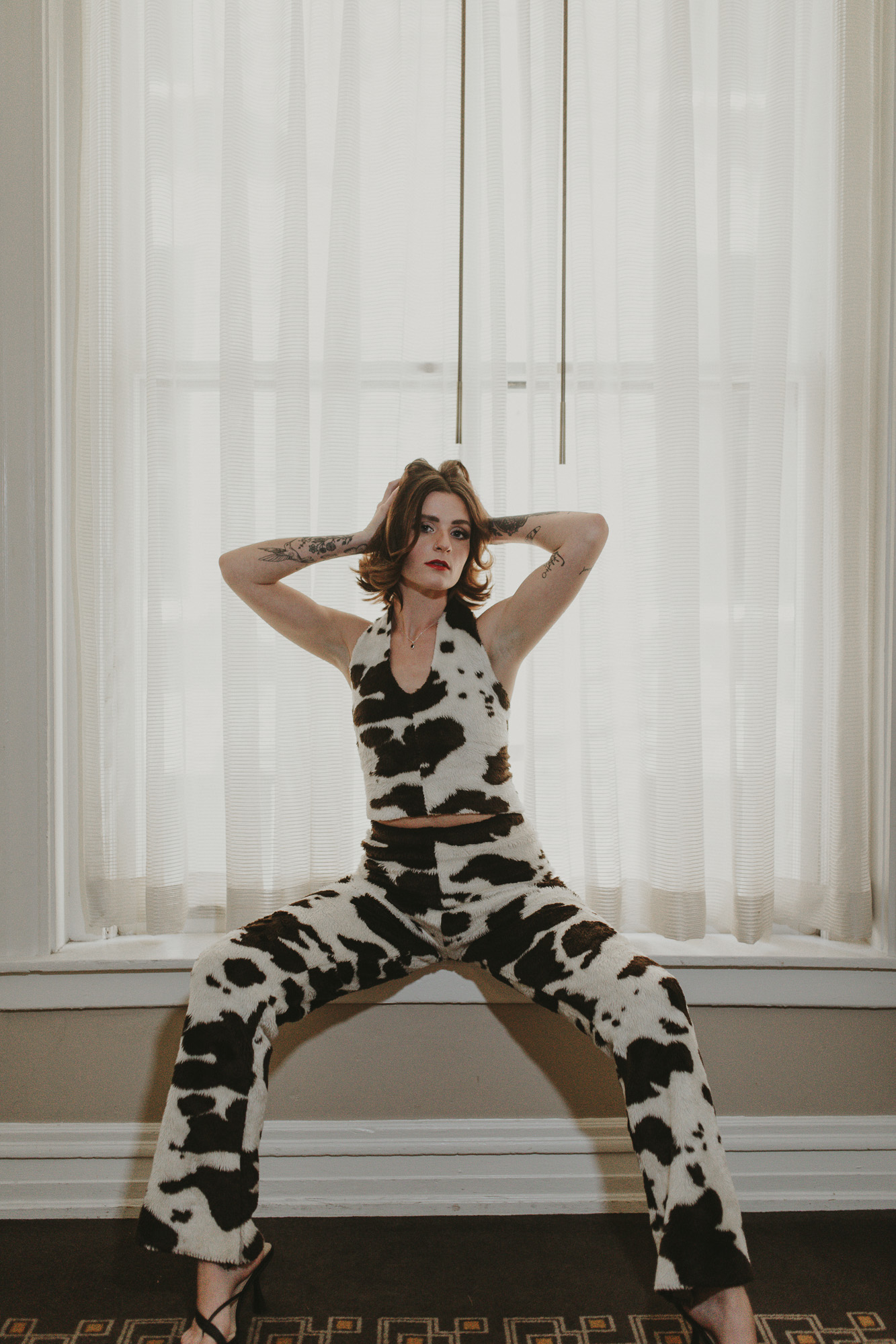 Bego’s favorite looks of this shoot were the cowprint outfit, which was curated by her business partner, Jenny Neal, for ThriftCon last year and it was a personal touch. And the roller girl costume because, “I love roller skating and her hair was insane and so good,” She said.
