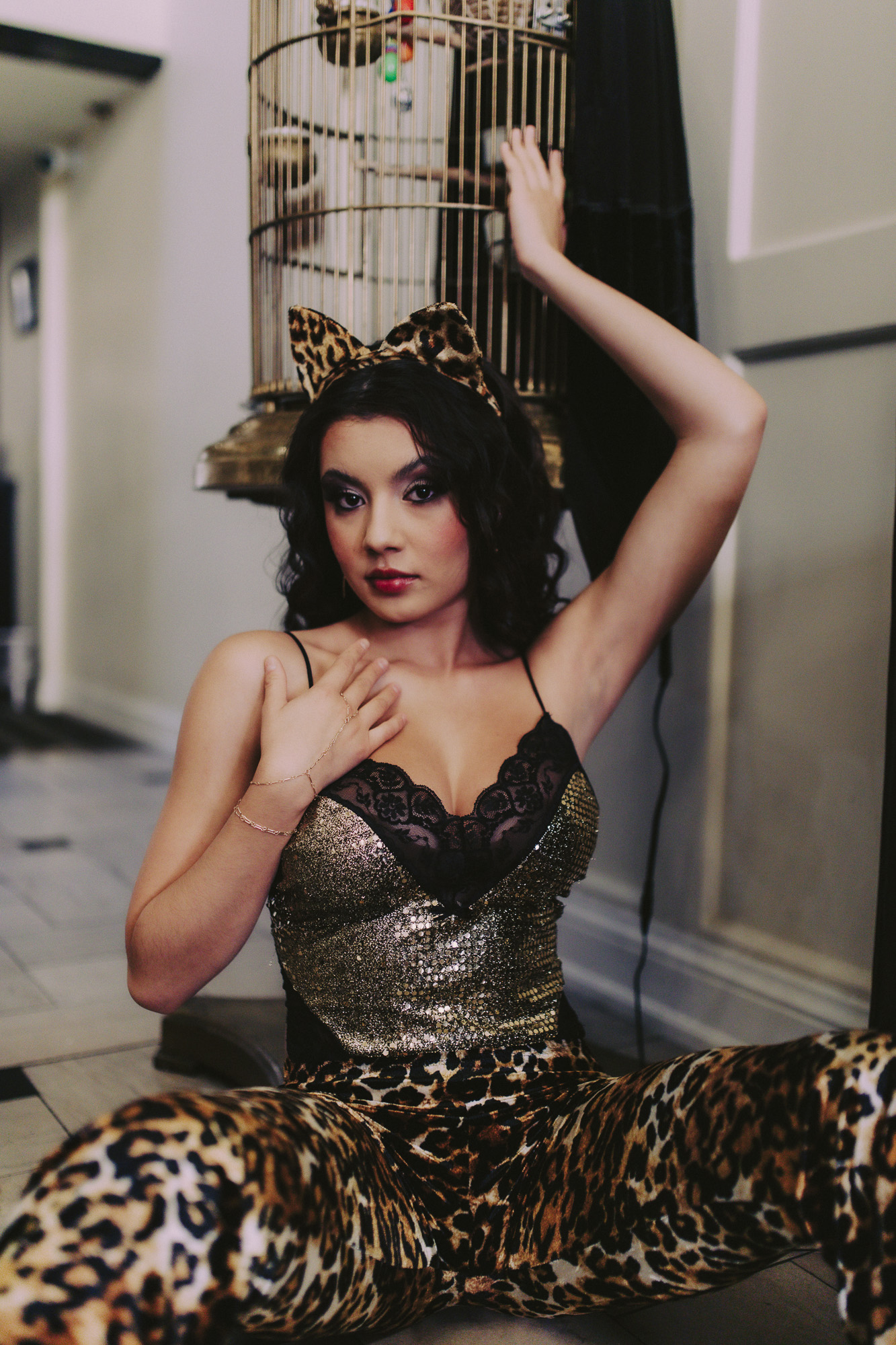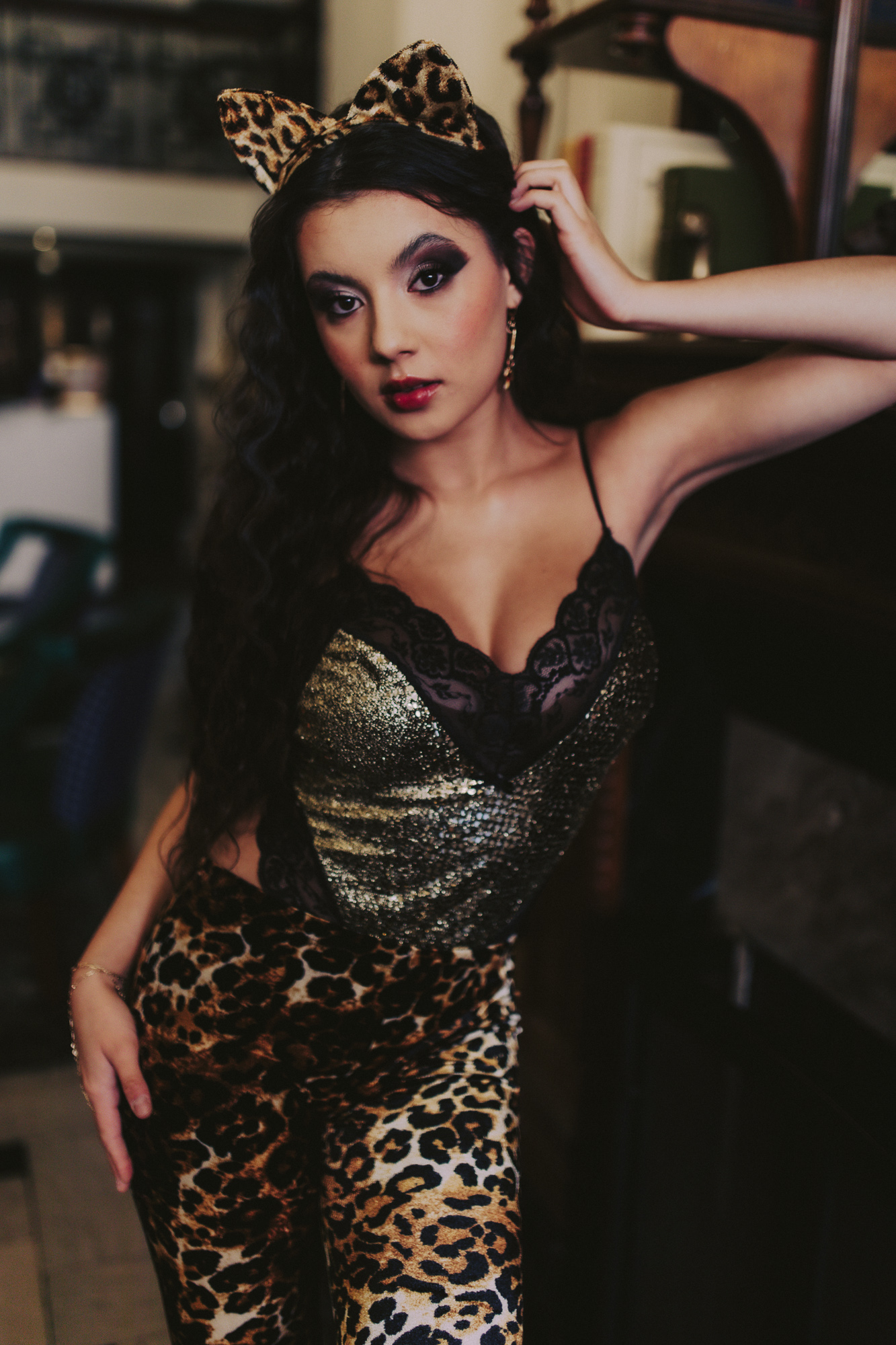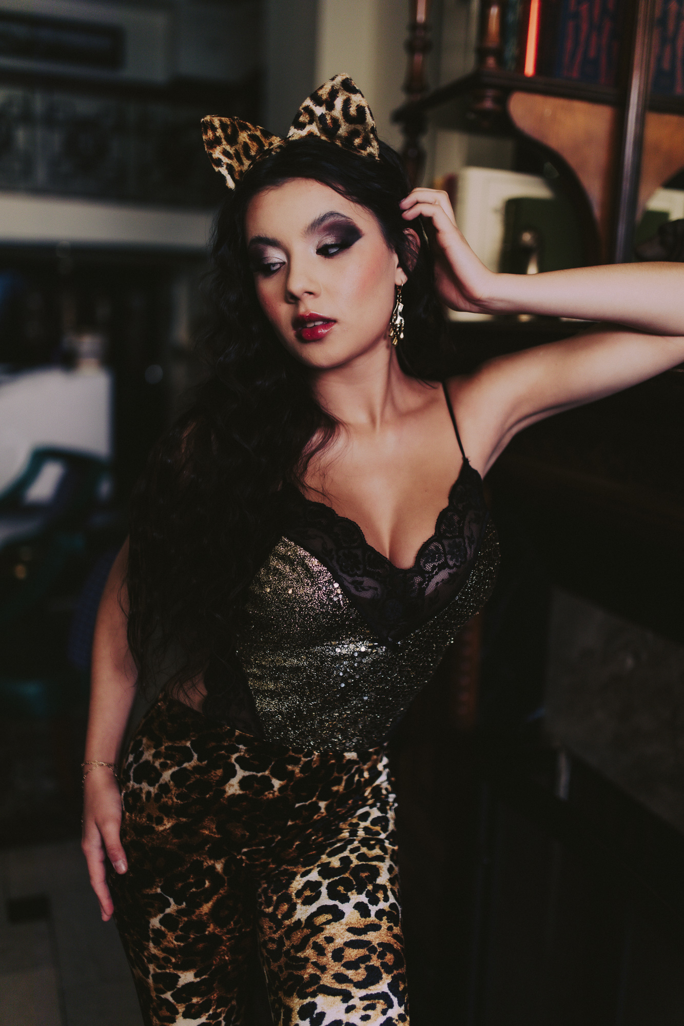 We all know and love the “The Cheetah Girls,” but why not be an actual cheetah this Halloween? Model Noella Wong gave a scandalous take on a popular costume, with vintage cheetah-print pants, a laced black top and chic black sunglasses.
