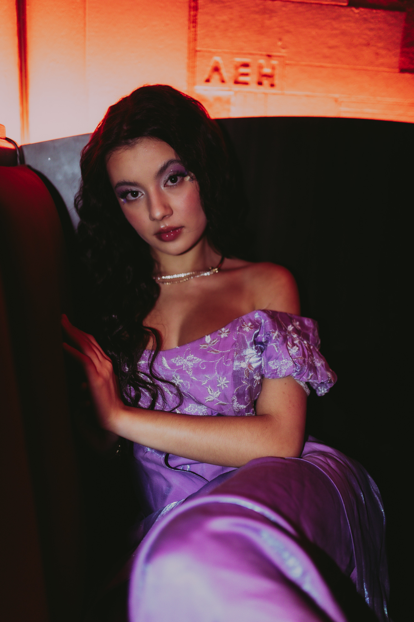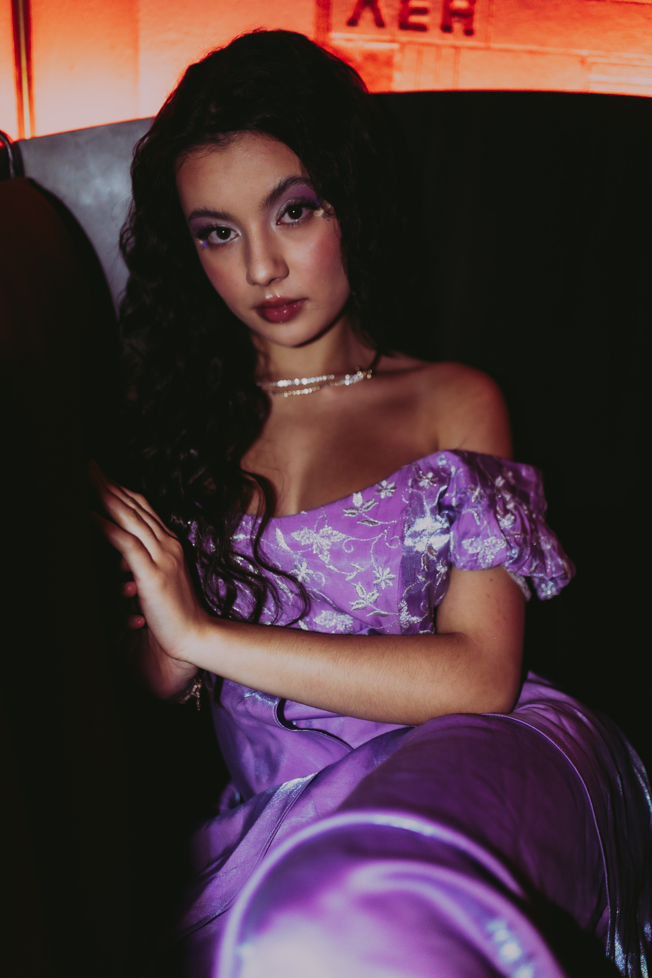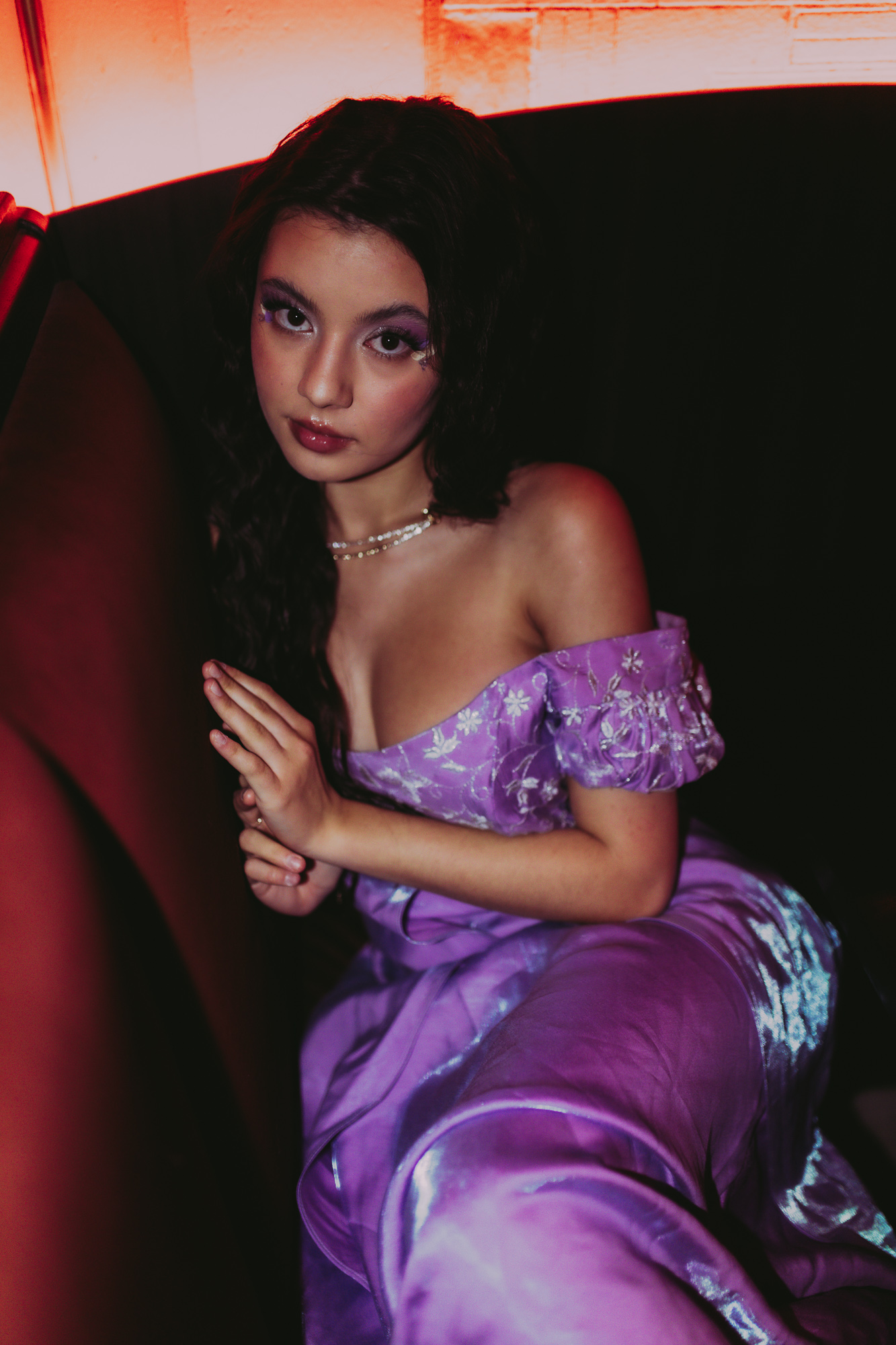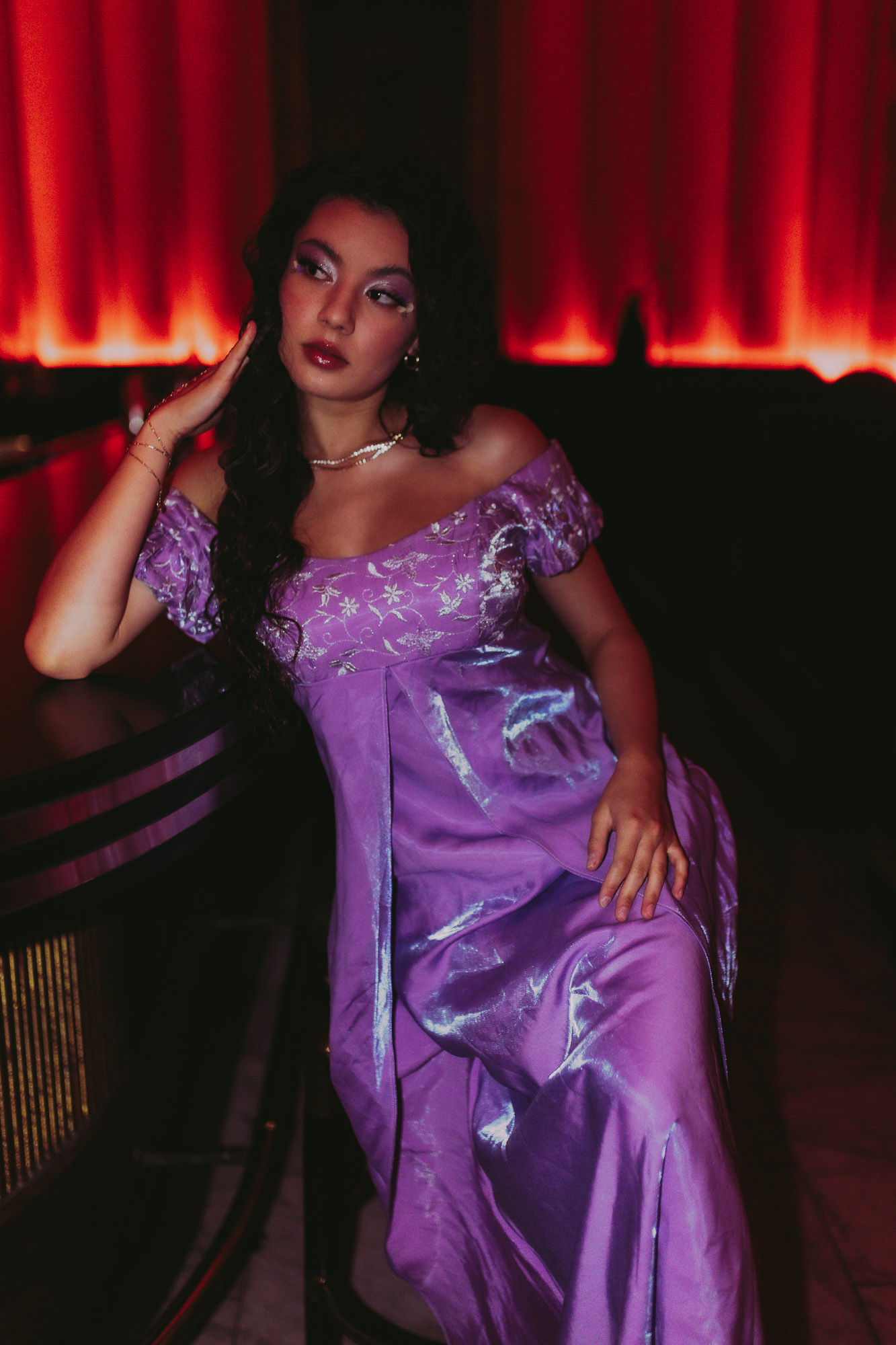 Everyone aspires to wear a “Bridgerton,” gown. This Halloween, channel that energy and become a princess for the night and live out your “Bridgerton,” fantasy. Wong’s wearing a purple off-the-shoulder, corset dress and delicate accessories. It’s a modern take on today’s princess.