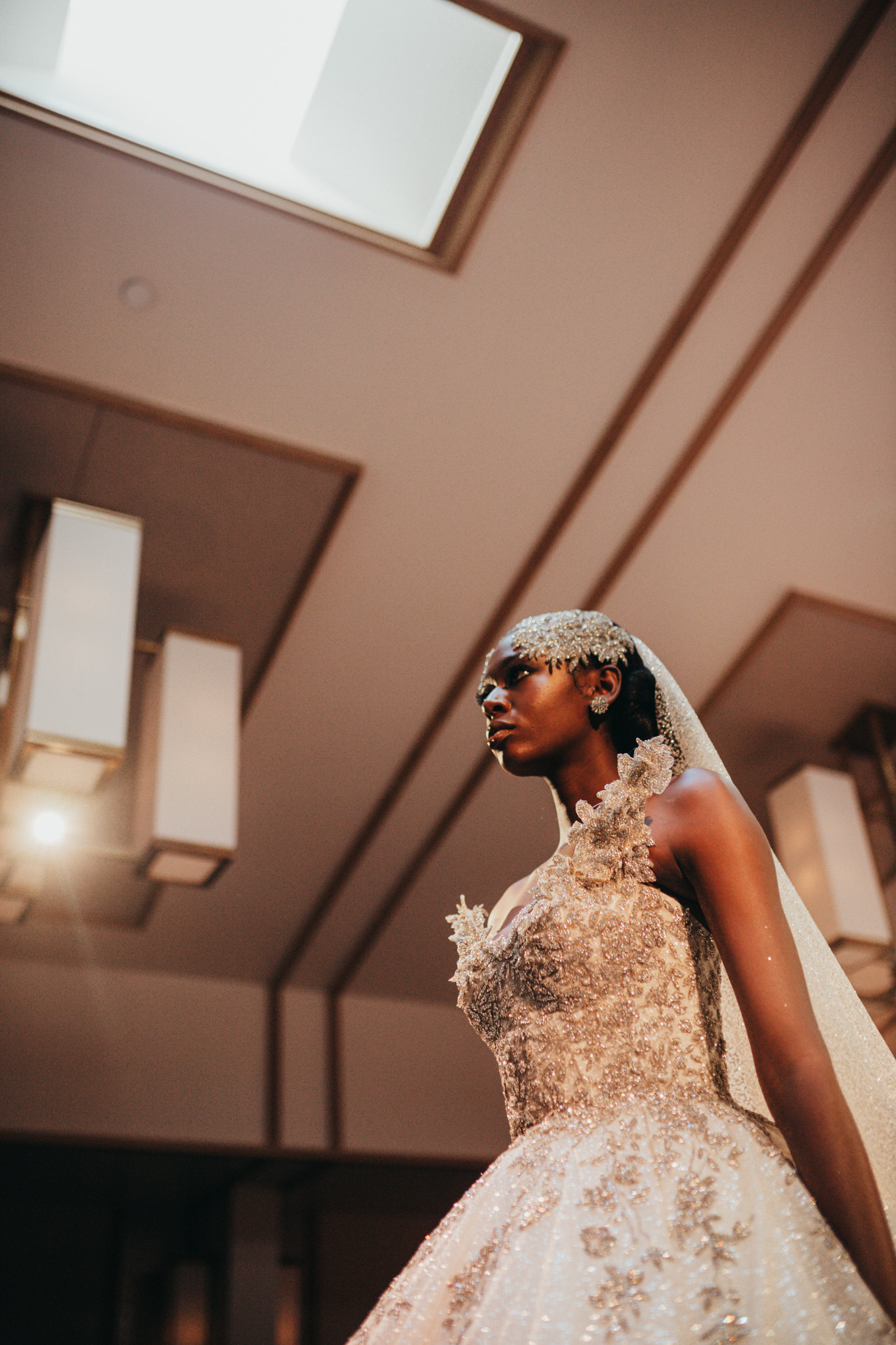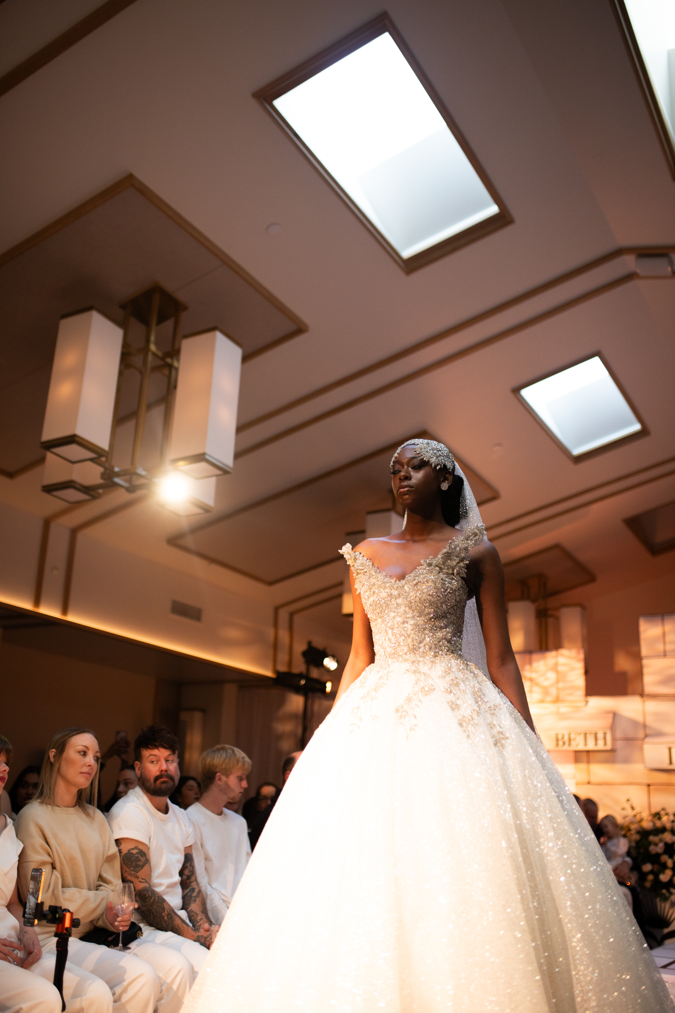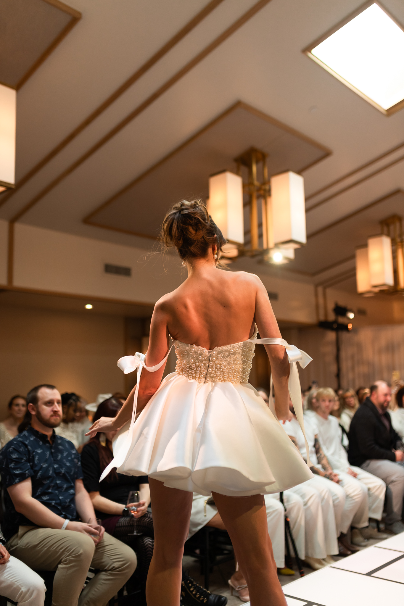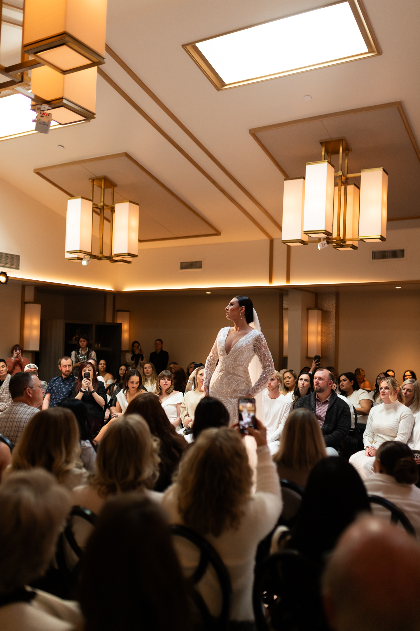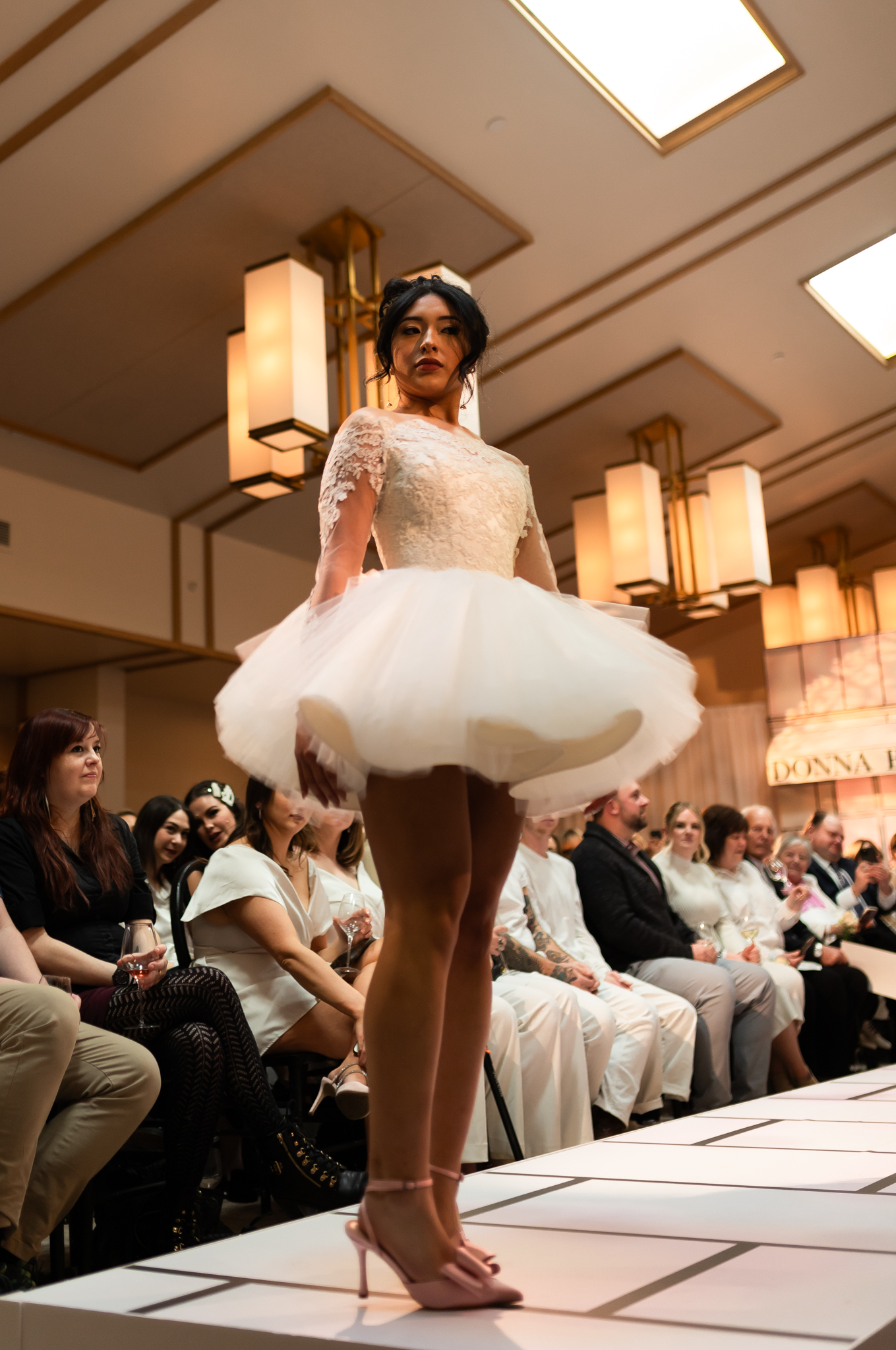 Before the show, guests were encouraged to come dressed in white immersing them in the bridal theme. At check in, guests received a white rose and a La Mariee breakdown that explained how each custom design was created to inspire and empower.