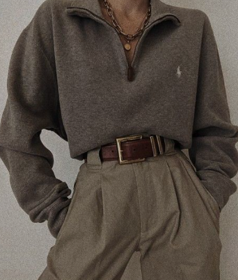 This trend also includes a lot of layering, making it the perfect look for winter and fall days. Pair your favorite vintage sweater with an oversized blazer or a sweater draped around your neck.