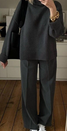 Not only is this a very chic look, but it requires minimal effort and a variety of ways to make it your own. Utilizing boots, pointed heels, purses, and pops of color like reds is a great way to spice up this look.