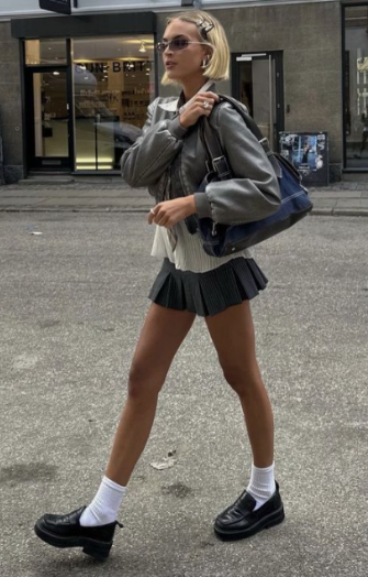 The micro skirt and short looks can be styled in many different ways. You can wear it more casually with a t-shirt and a cover up jacket, or dress it up with a fancy polo or blazer. Another look similar to the micro skirts and shorts is wearing an oversized shirt or sweater dress.
