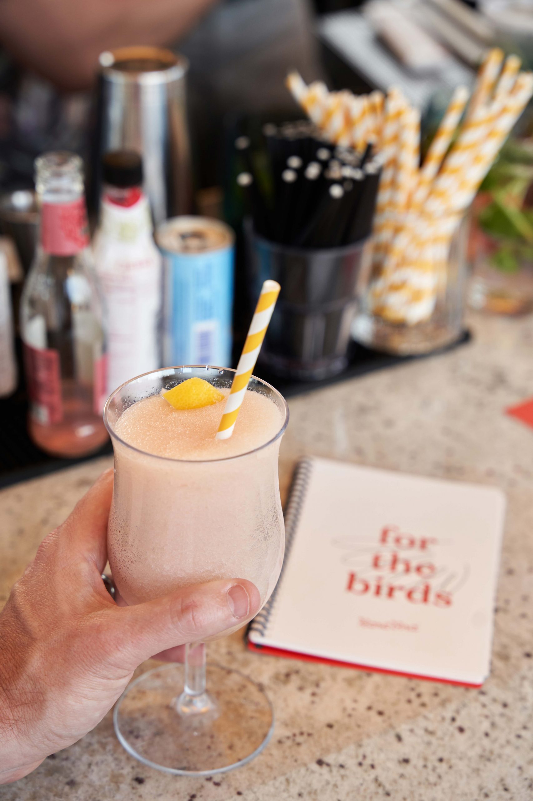 “Bright, refreshing drinks pair best with the rich flavors in our entrees, like The Burger ($23) and Fried Chicken Sandwich ($21), in addition to our snackier options and Saturday cookouts,” says Oyadomari. With a handheld, try the frozen Macaw Me Crazy ($17), which includes Malibu Rum, pineapple and coconut.