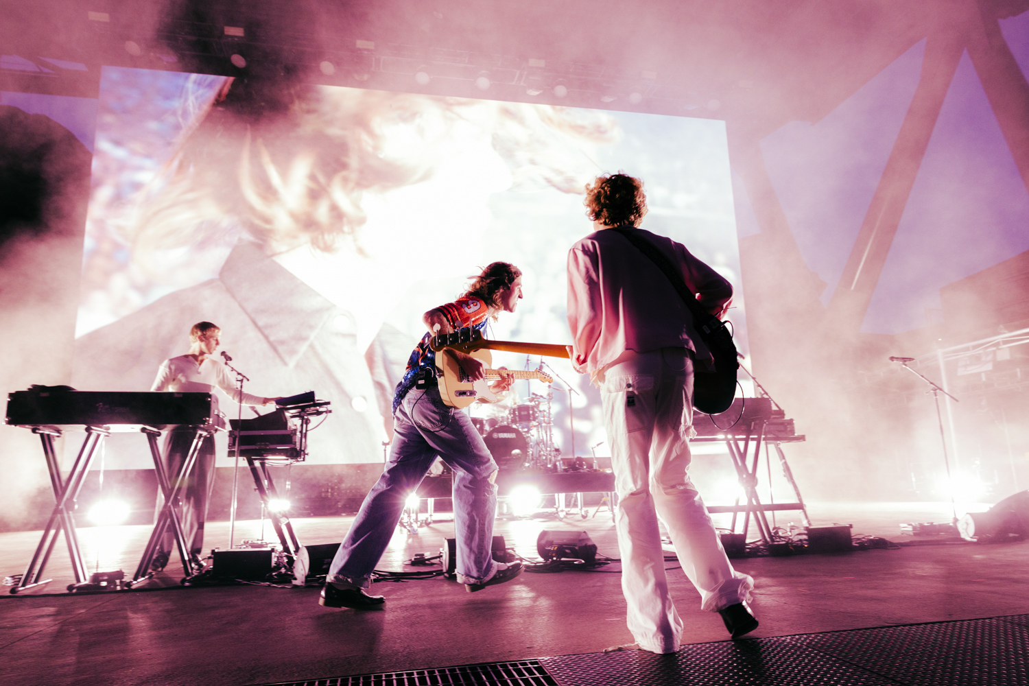 They started slow, each member coming out one by one, starting with keys and guitar player Patrick Hetherington, who waved to the crowd briefly before playing the first notes of their set. He was followed by keys player Louie Swain, who added another layer, then guitar player Jules Crommelin. The three of them built this bright crescendo that was then accentuated when bass player Noah Hill came out to join. Finally, drummer Anatole “Toto” Serret came out, and the show got underway.
