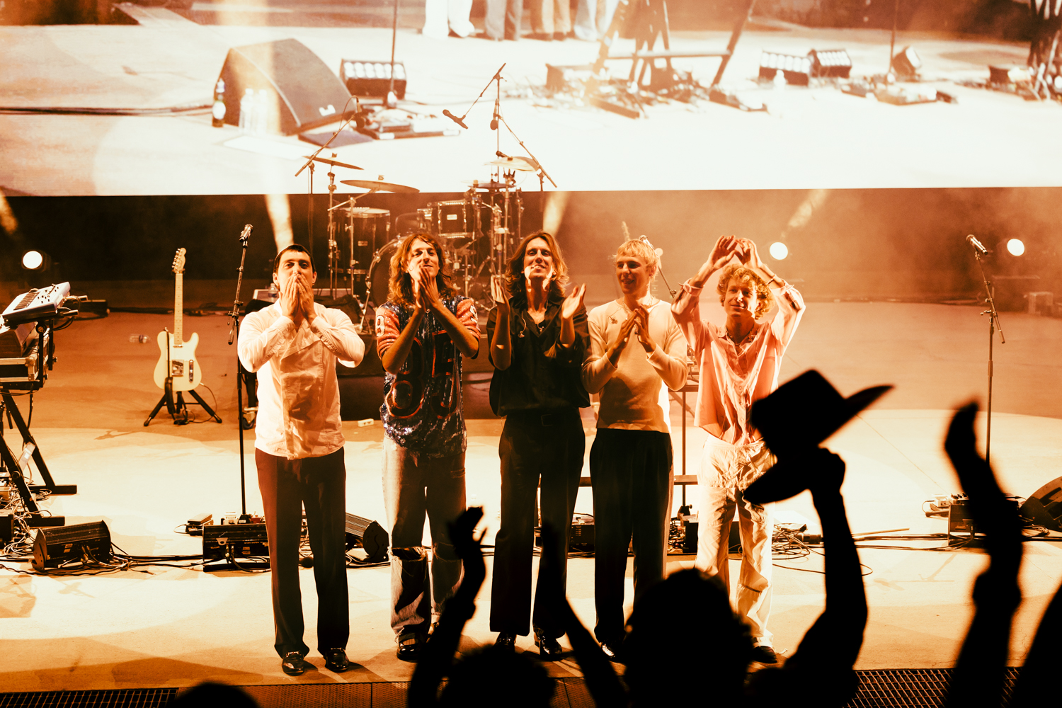 Parcels played an absolutely packed Red Rocks on Monday. From the moment of the show’s announcement, there was this feeling of it being something special surrounding it. The Australian-born, Berlin-based band rarely comes to the States, so it feels like a true occasion when they do. Besides a much-lauded stop at Bonnaroo over the weekend, this show would be Parcels’ only stop in North America. As a result, the show was one of the most hyped of the early summer, a fact reflected by the overflowing crowd who bore witness to a dance party that transcended this earthly realm and became something that will live on etched into the rocks as well as the hearts of those in attendance until the end of time. The show was beautiful, nearly perfect if such a thing exists, the kind you remember and smile about for years to come, its warmth nestled gently in your chest for the rest of your life.