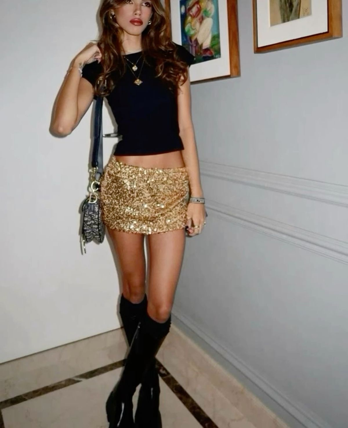 Nothing will ever look better under concert lighting than sequins and what’s more fun than a mini skirt? Match the pop-star on stage wearing a silver sequin mini skirt and have the lighting reflect right off of it.