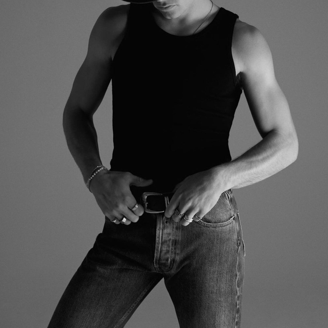 Keeping with this idea, Ross Lynch tends to gravitate towards fitted tops, most often in the form of a baby tee or a white wife *pleaser.*