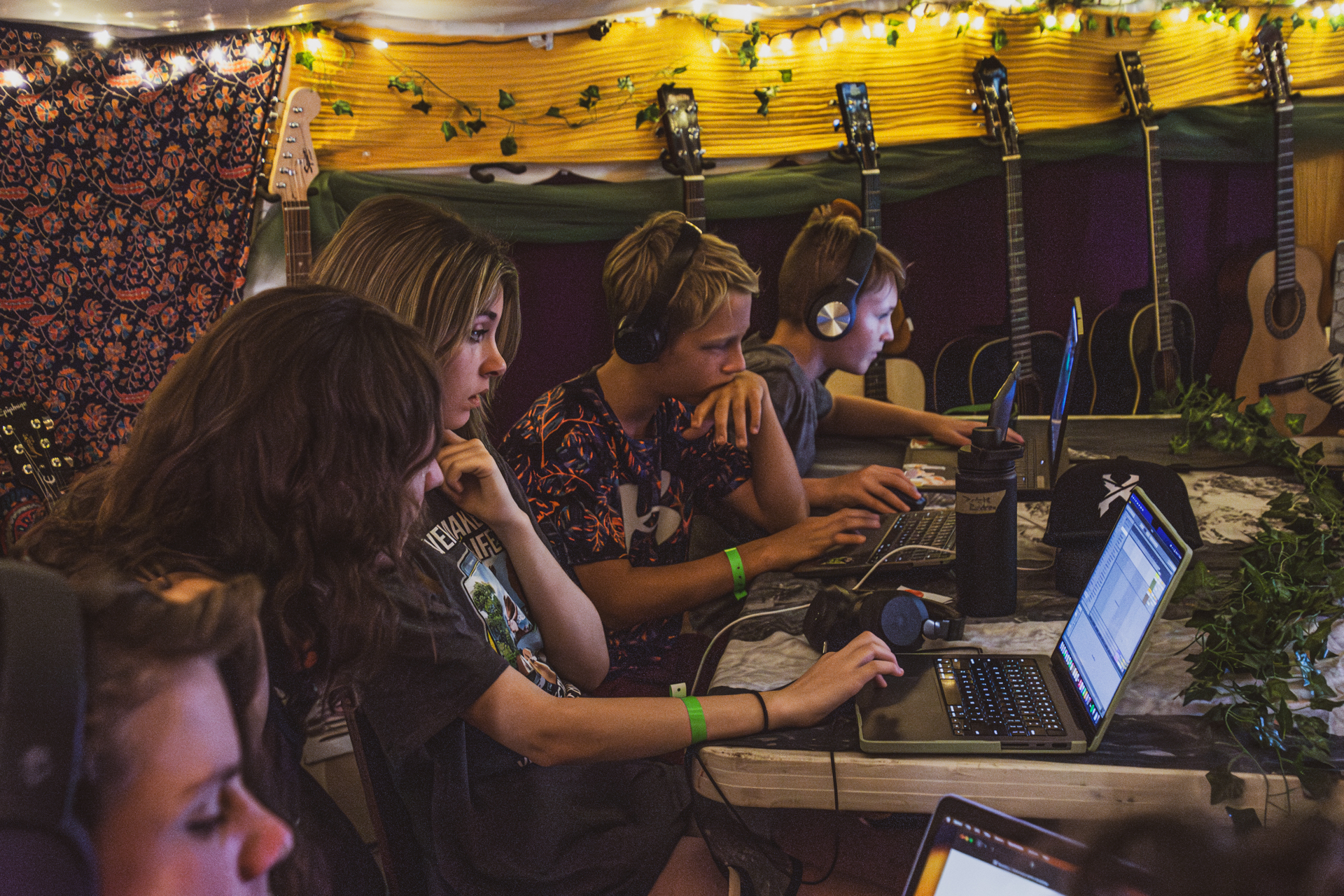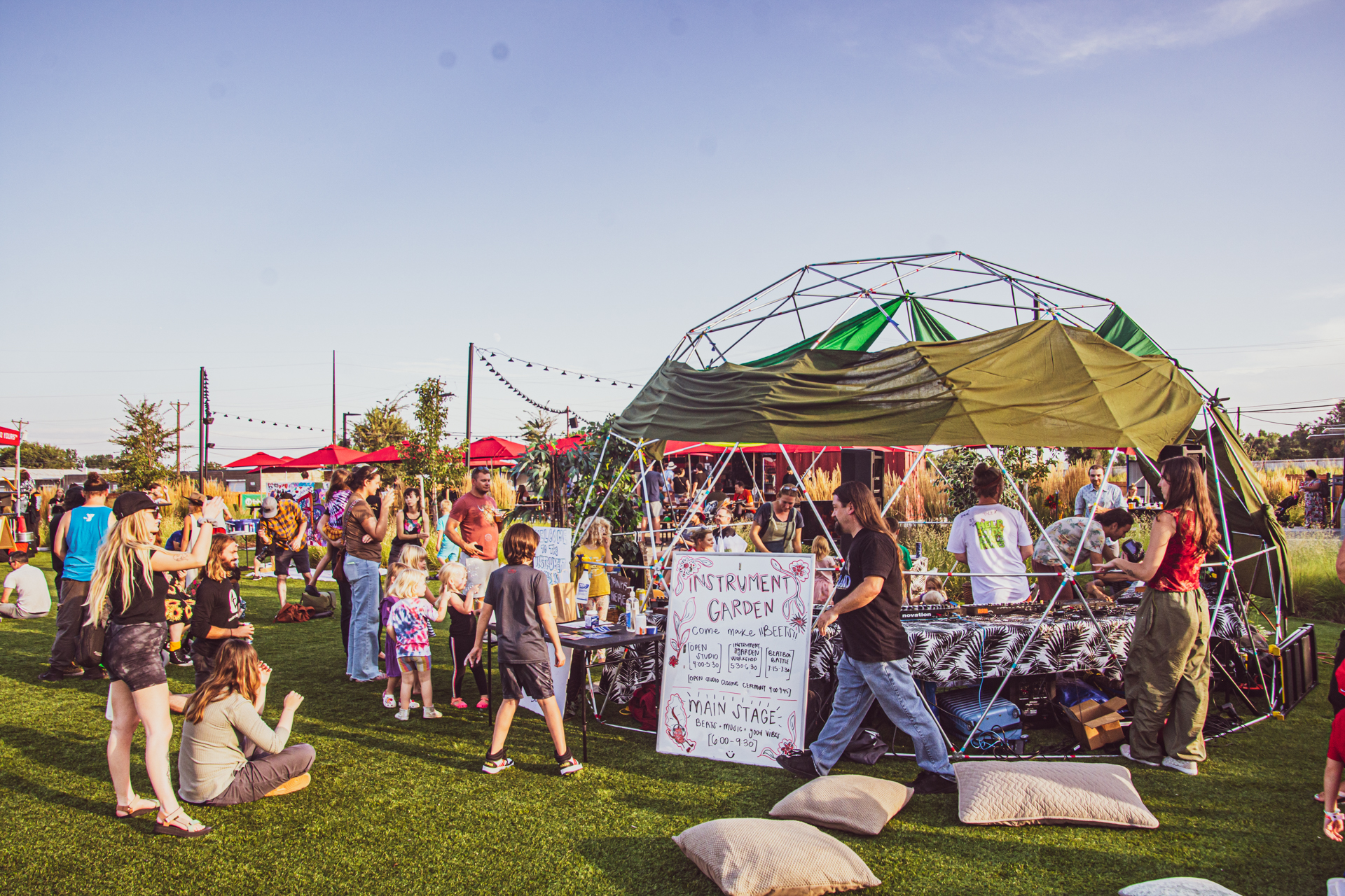 That’s the studio experience. “Instrument garden installation” is the phrase that people in the festival community are used to. Similar to an art installation, we set up the studio in a geodesic dome and fill it with a bunch of plants and instruments. The instrument garden is a place where everyone within is a musician, everything is an instrument, and it’s a safe place to create. But it’s morphed into the “instrument garden workshop,” which is where we’re guiding people on this adventure through beats, melodies and vocals. It’s a formulaic process.