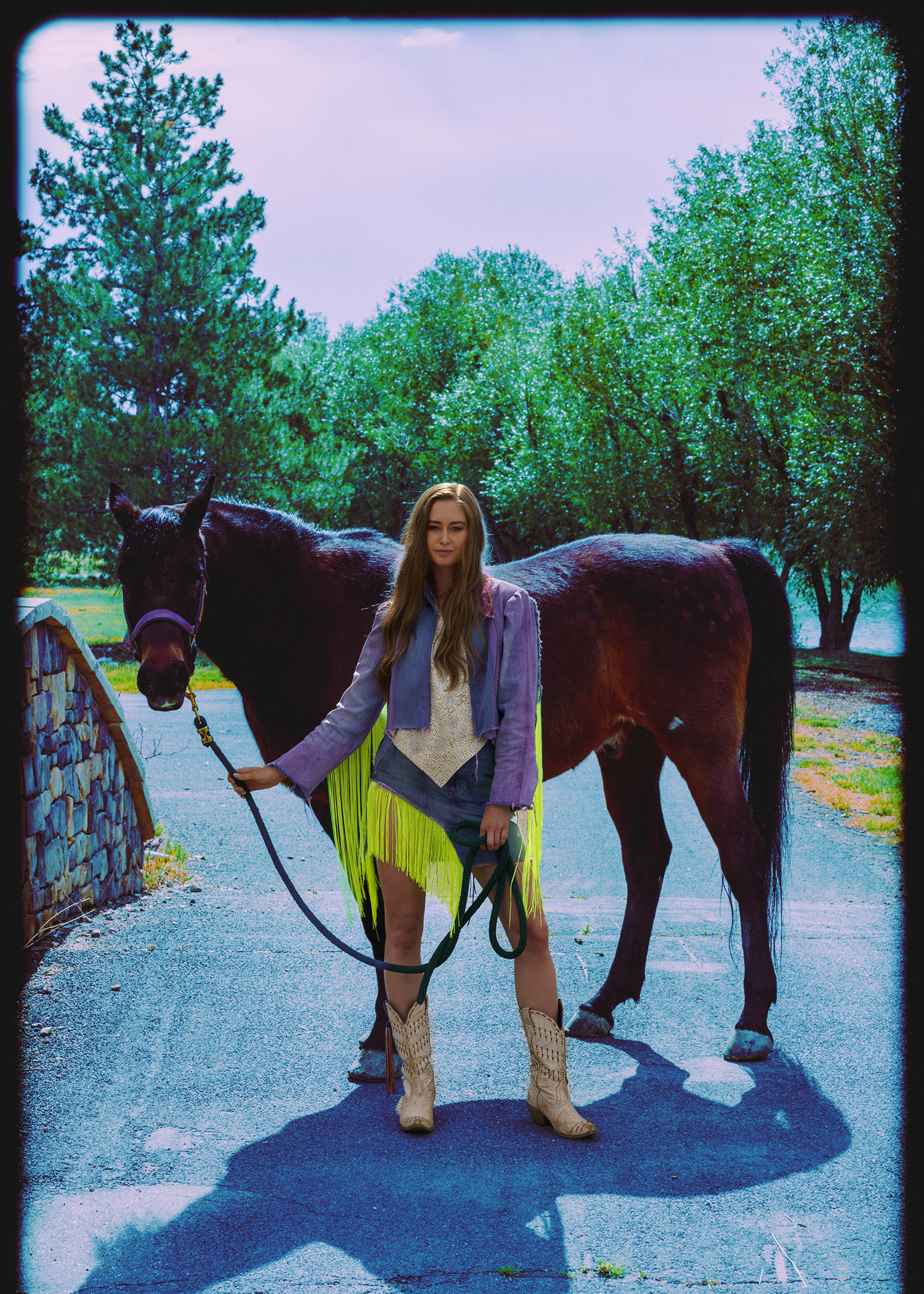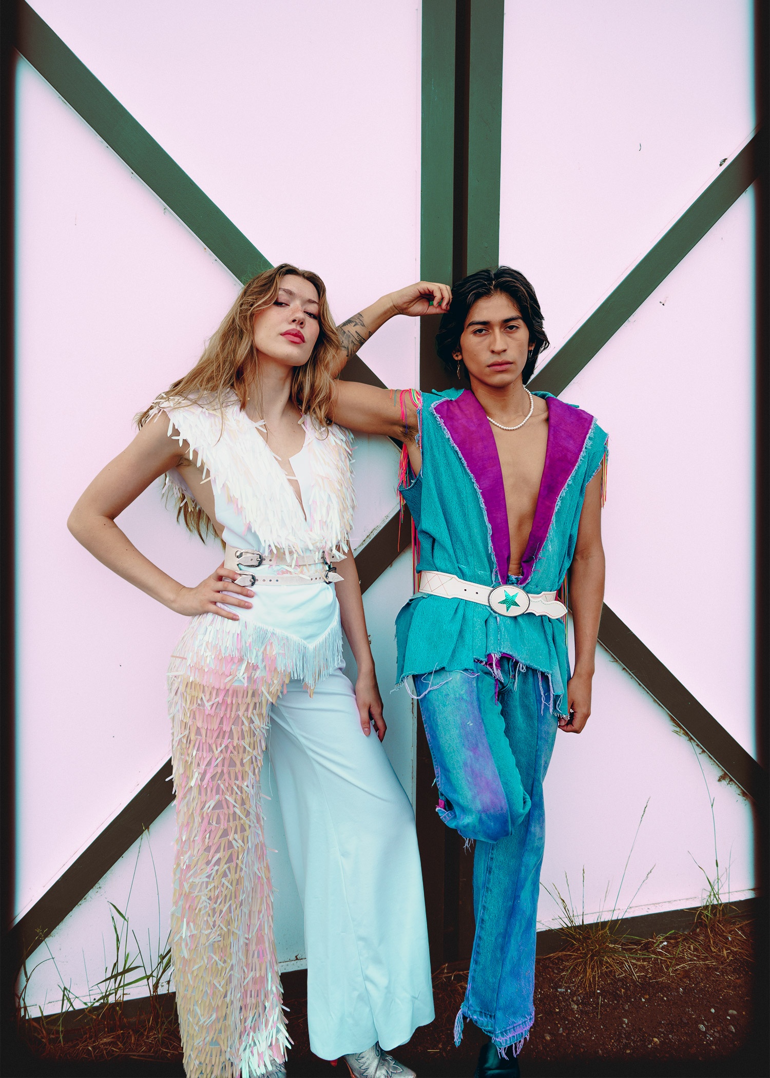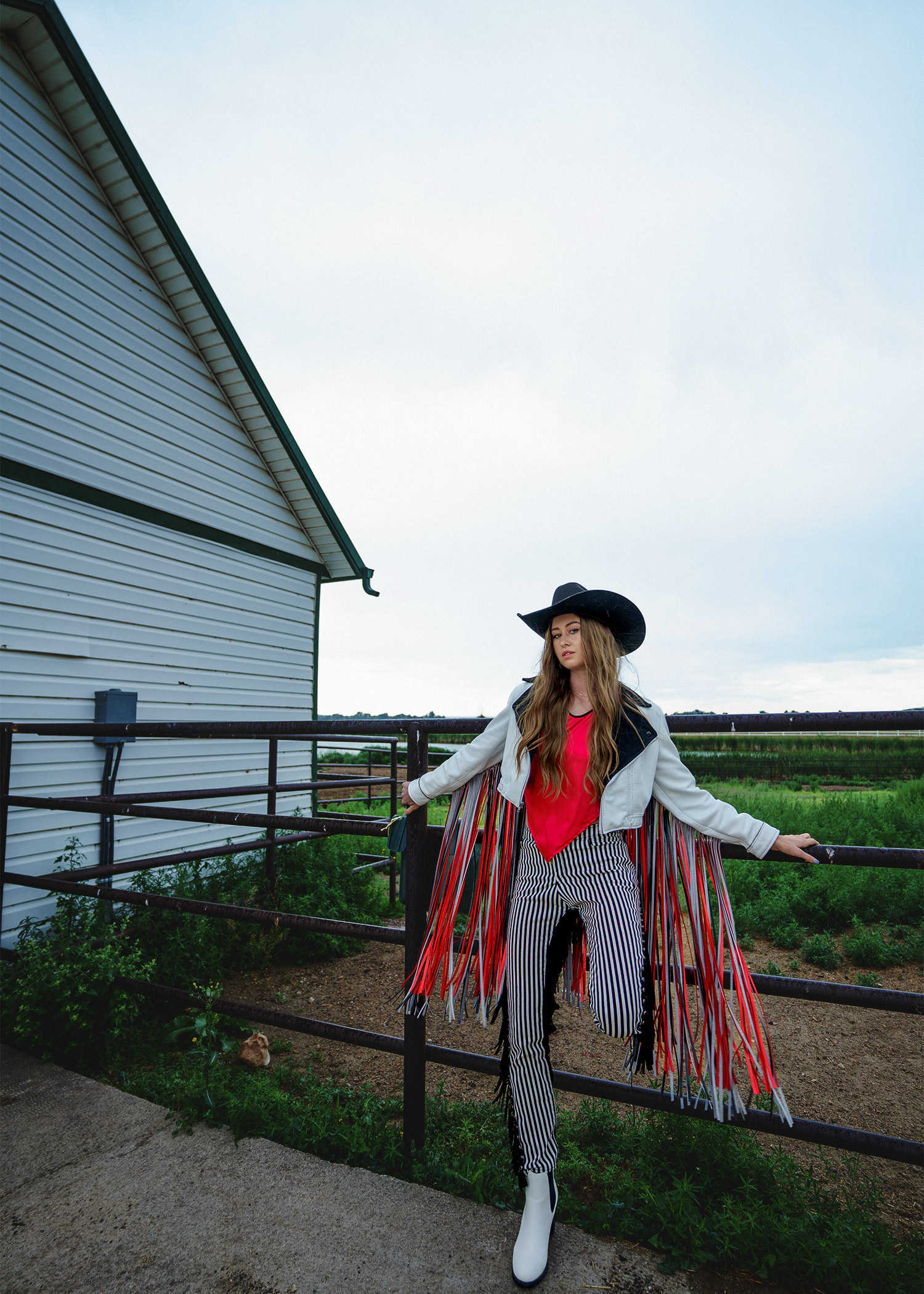 “One of my all time favorite and interesting parts about Western is all of the fringe that gets used,” Burback said. The use of fringe is incredibly apparent across her two latest collections, from the back of a jacket to the seams of pants.
