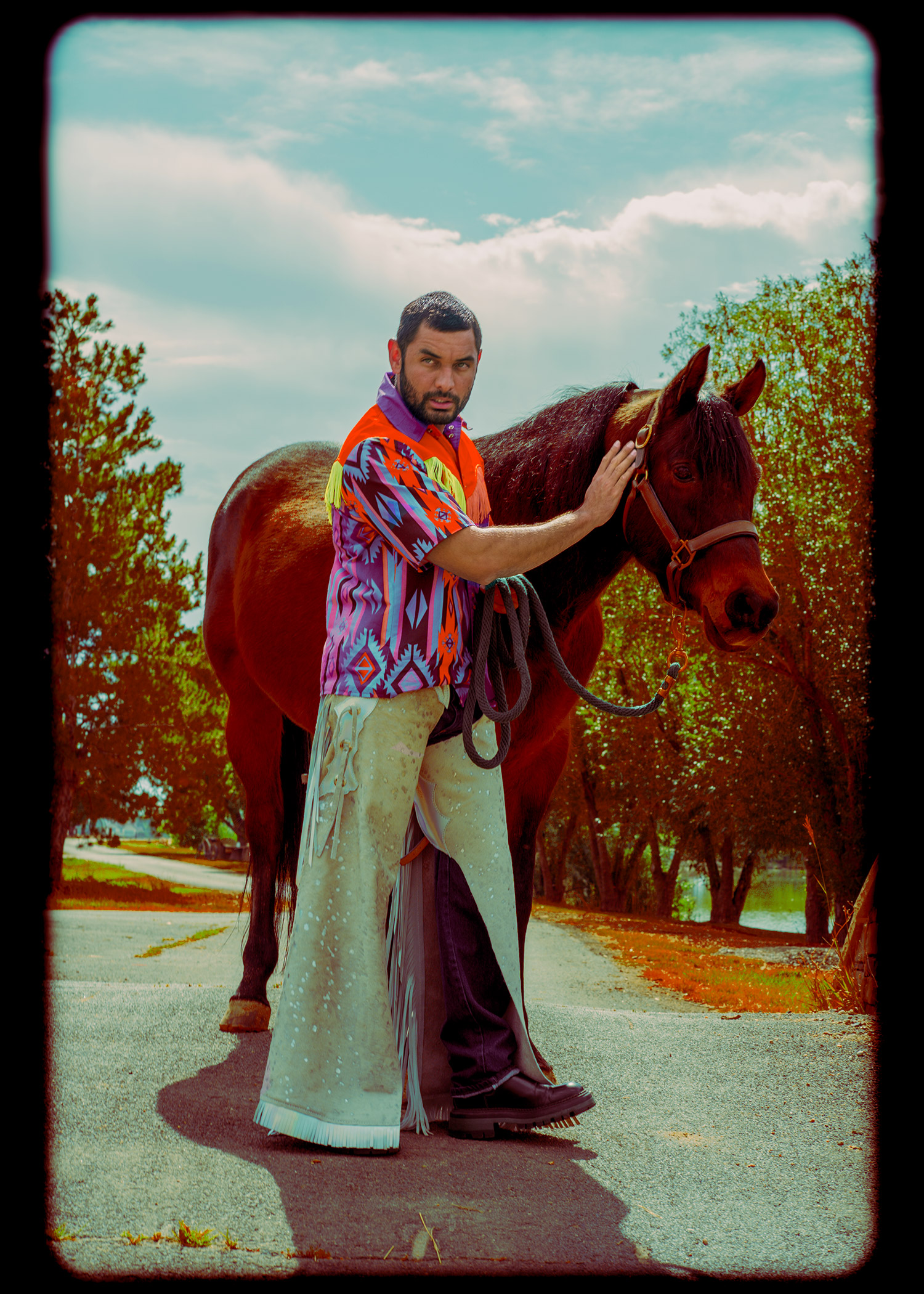 The designer also adores working with leather across a variety of items. Burback admires just how adaptable the material is. It can be used to create jackets, pants, saddles, tack, and even more.