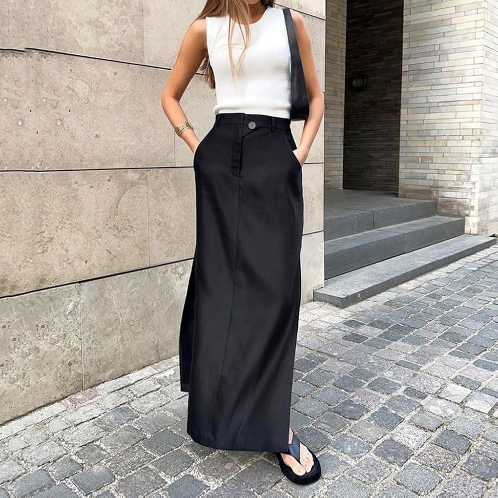 Maxi skirts and dresses are elegant and office-appropriate for transitioning seasons when styled correctly. Choose maxi skirts in light, breathable fabrics like cotton or chiffon, paired with a fitted sweater to create a balanced and polished look while also providing warmth as temperatures start to cool down. A high waisted maxi skirt with a sweet and simple top can provide a sophisticated look while maintaining that comfort.