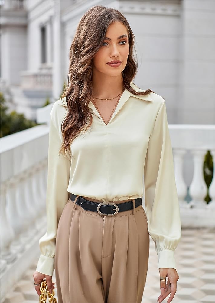 Pair a satin top with tailored trousers, a cute pair of jeans or a skirt to balance the glossy texture with structured pieces. For a more polished look, consider a satin shift dress or sheath dress, which can be worn with a light jacket. The key is to keep the overall outfit understated yet stylish, ensuring that the luxurious fabric enhances your professional presence rather than overwhelming it.