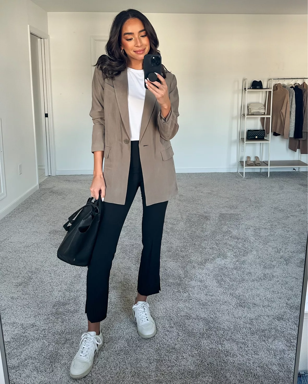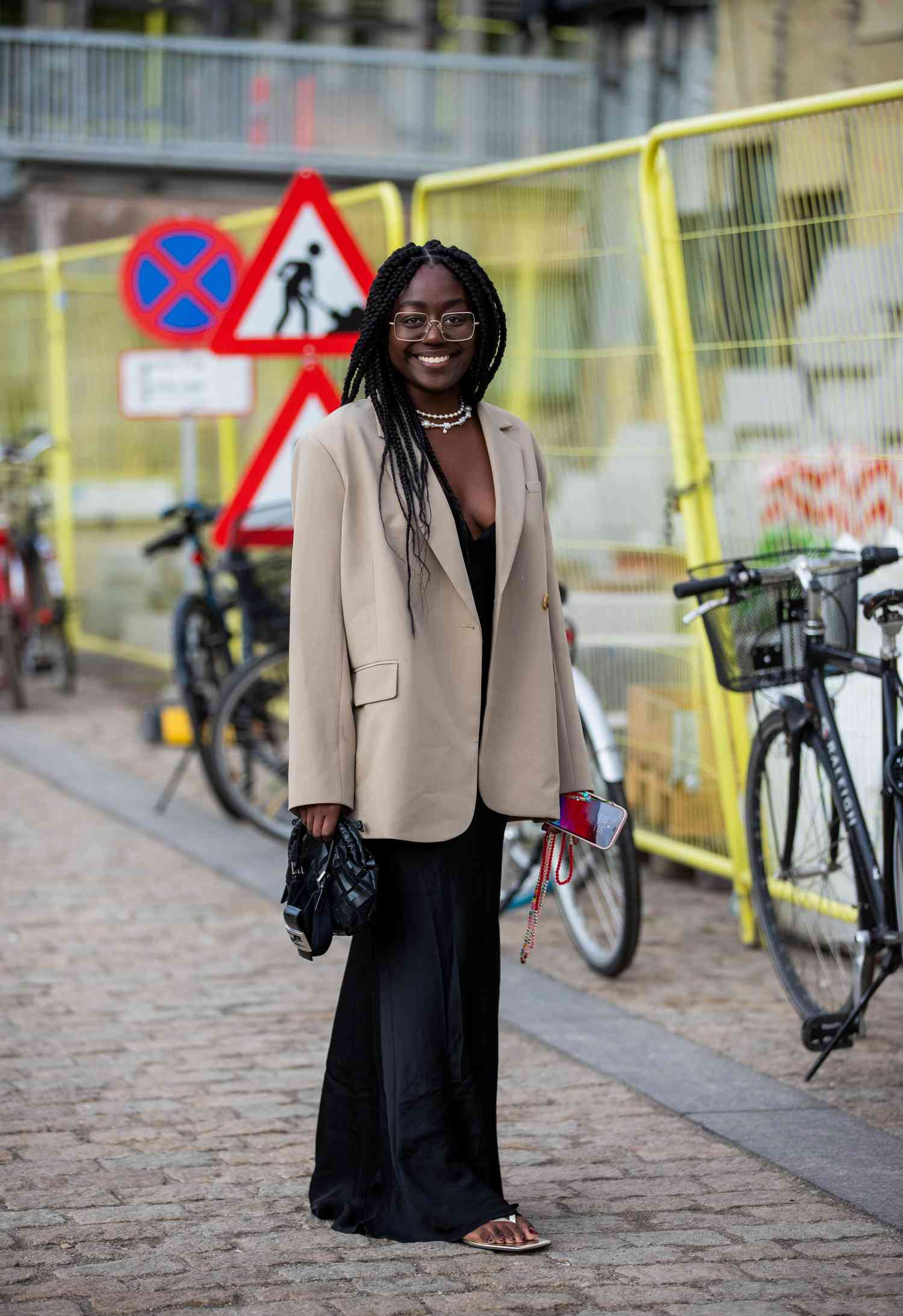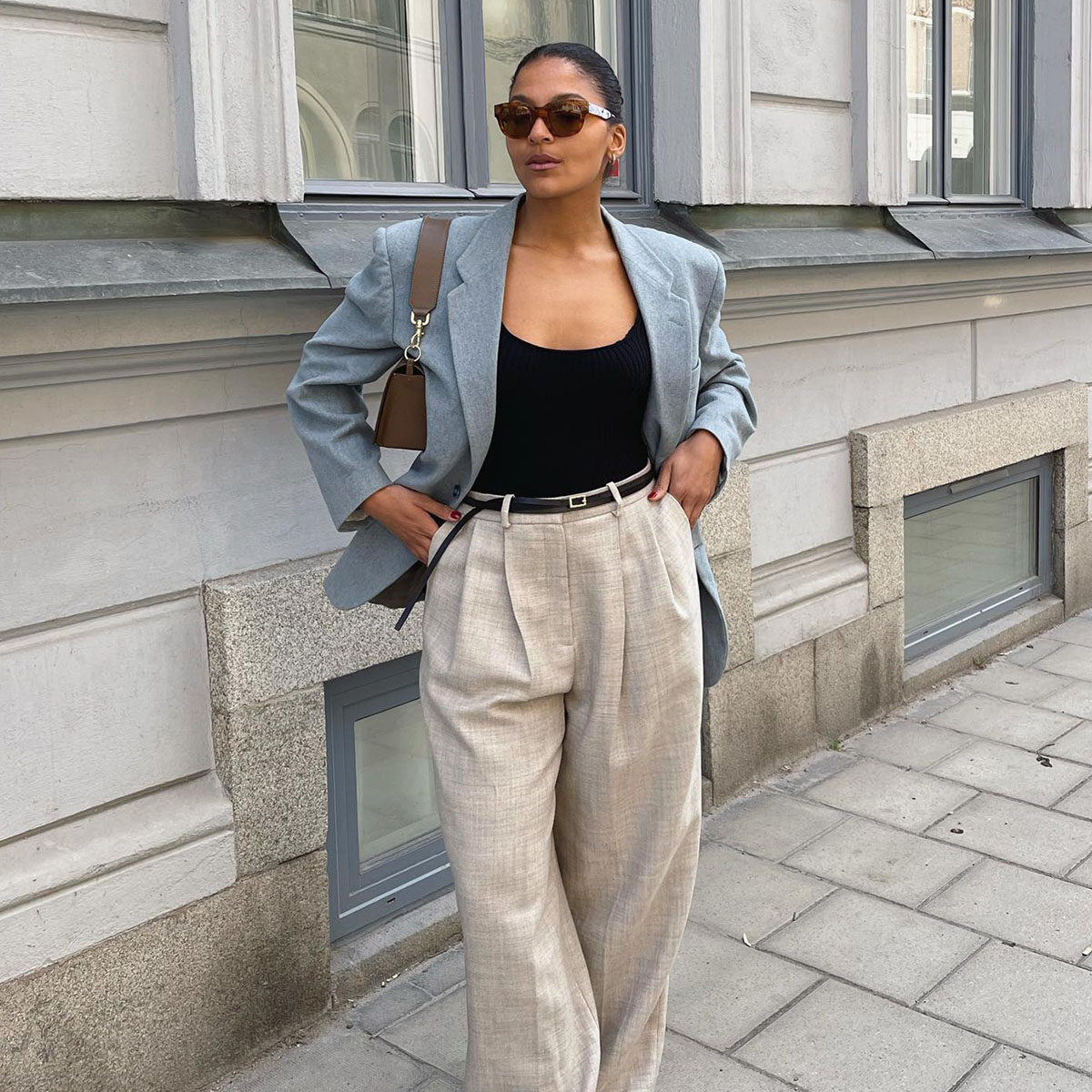 Oversized outfits can be both stylish and office-appropriate during the transition from summer to fall when worn carefully. Embrace the trend with a tailored, oversized blazer worn over a fitted top or dress, pairing with high waisted trousers or a midi skirt for a blanched silhouette.