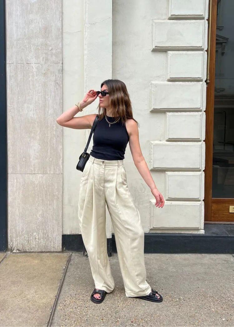 To maintain a professional look, choose neutral or soft hues and keep the overall look well-fitted and streamlined. Linen sets are also a super easy, great option.