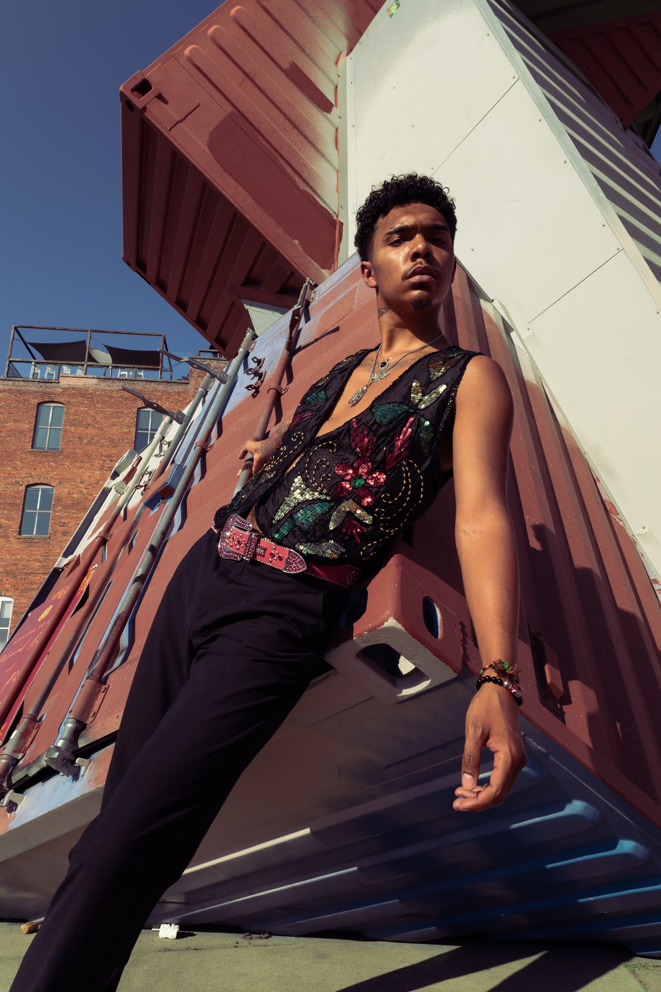 “I love looking for treasures, sifting through the bins, and discovering perfect, intact pieces you would never find elsewhere. Last season, I unearthed a pristine, pink, genuine leather jacket for two bucks because it was in the bins — a true treasure and one of the most beautiful things I’d ever upcycled,” Hazelwood shared.