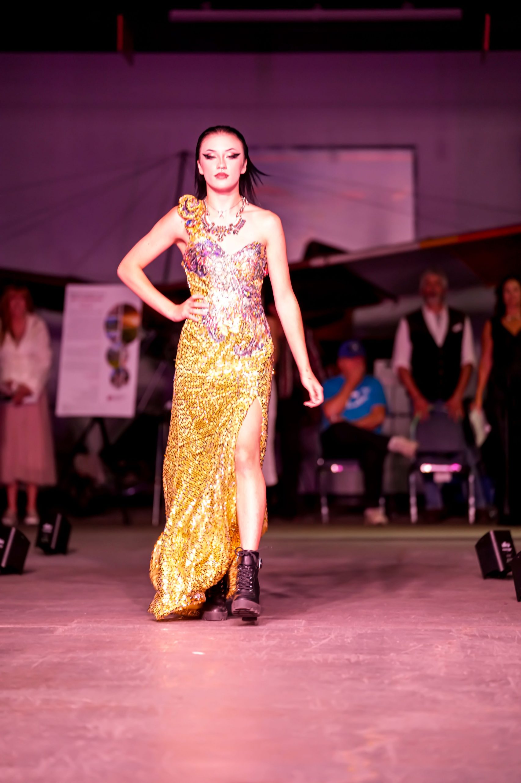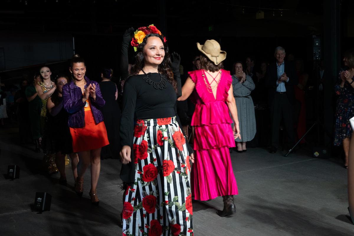Then, a decades-themed fashion show was held, showcasing women who had been helped and uplifted by the program, strutting their stuff down the makeshift runway — “These are real women on the runway”, said one of the speakers. Following the show was an ask for donations and a live auction held by the Auction Diva, Shelly St. John.