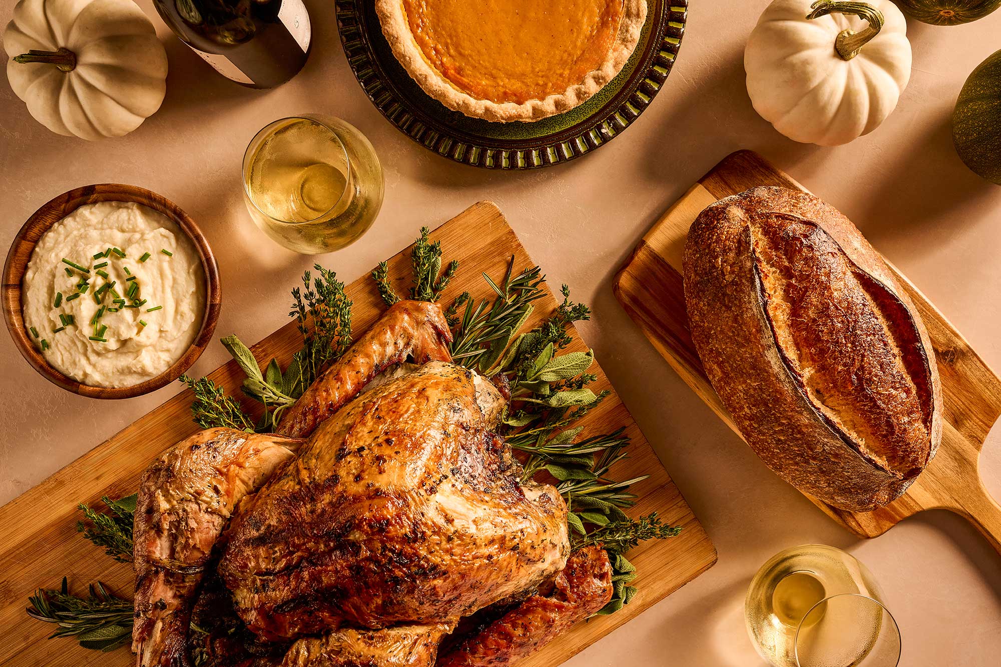 If you choose a night in, the free-range turkey entree plus pumpkin pie are available for takeout in single servings ($64) or servings of two ($124). Try a little bit of everything by adding on STK Signature sides for $19 each: mac and cheese, creamed spinach, fried brussels sprouts, tater tots, and sweet corn pudding (lobster mac and cheese for $32). To top it all off with a whole spiced pumpkin pie for $64 because, let’s be honest, a slice just won’t do. Orders and reservations can be found here.