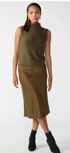 If you’re aiming for something even more refined, the quiet luxury trend is a must try. Celebrities like Gigi Hadid have embraced elevated basics made from rich textures like cashmere and silk. For a luxurious yet understated Thanksgiving look, wear a satin slip skirt paired with a cozy chunky sweater, a la Emily Ratajkowski.