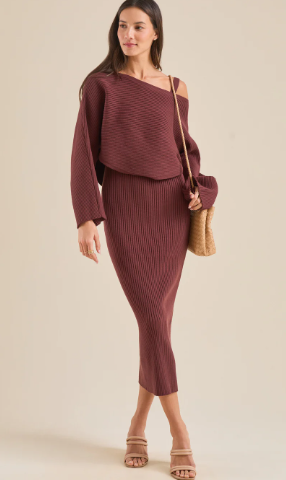 Consider wearing a dress with standout details if your Thanksgiving plans lean toward something more refined. A knit midi dress with a belted waist offers a flattering silhouette and feels effortlessly seasonal. This look strikes the perfect balance between cozy and polished, making it ideal for a more elevated Thanksgiving gathering.