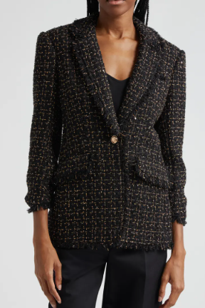 Statement outerwear is a trend that has been dominating celebrity streetstyle lately with oversized blazers and tailored coats taking center stage. Take a cue from Sofia Richie Grainge’s signature polished aesthetic by layering a tailored plaid blazer over a turtleneck and pairing it with straight-leg jeans and loafers. This timeless combination is both classic and current and it’s easy to pull off with pieces you likely already have in your wardrobe.