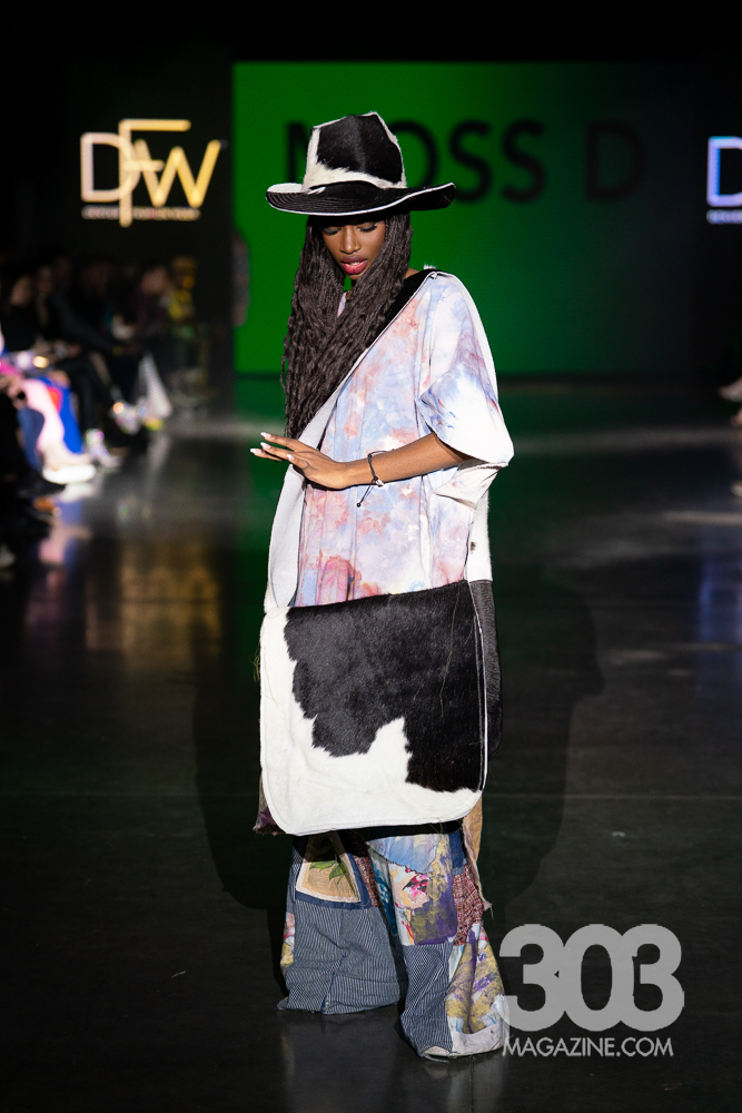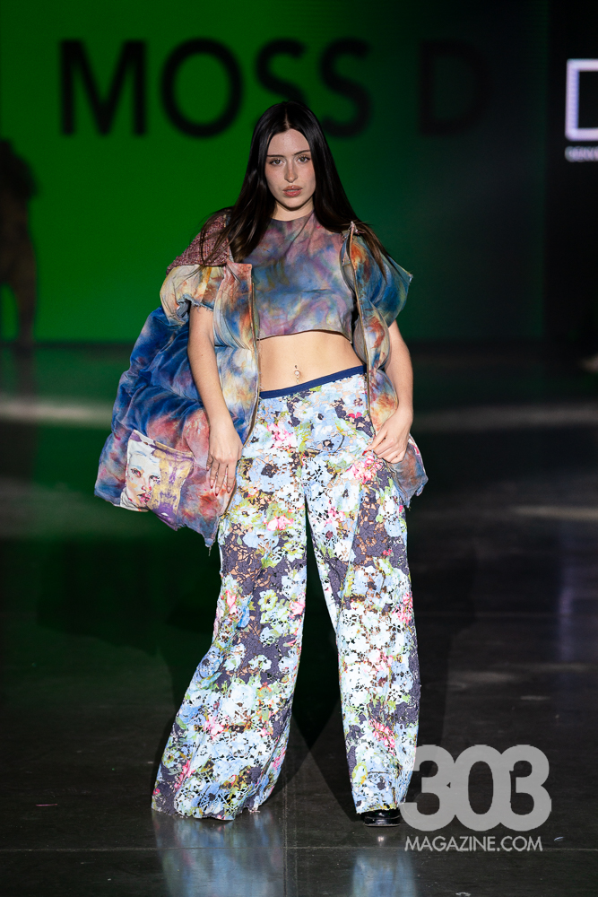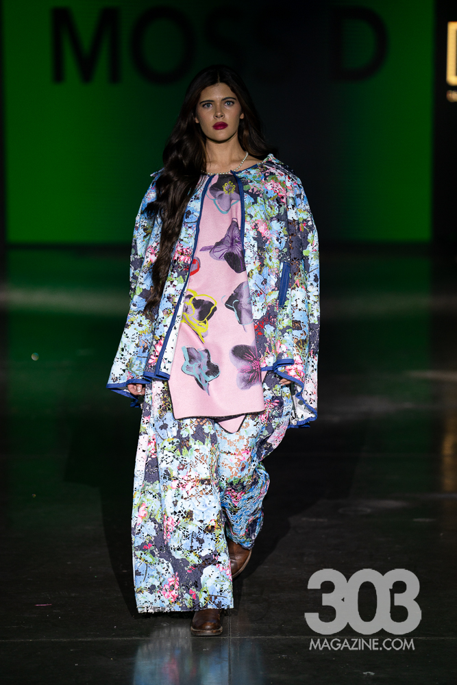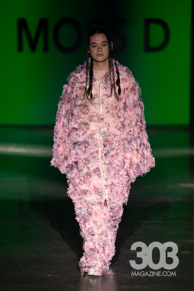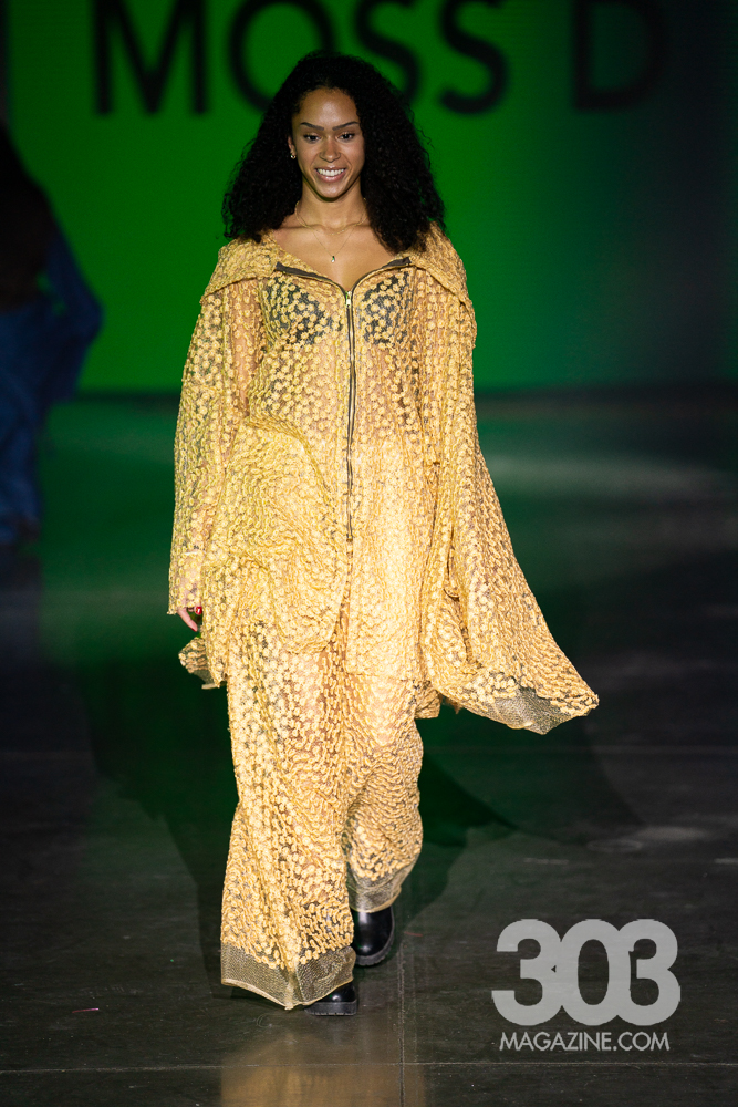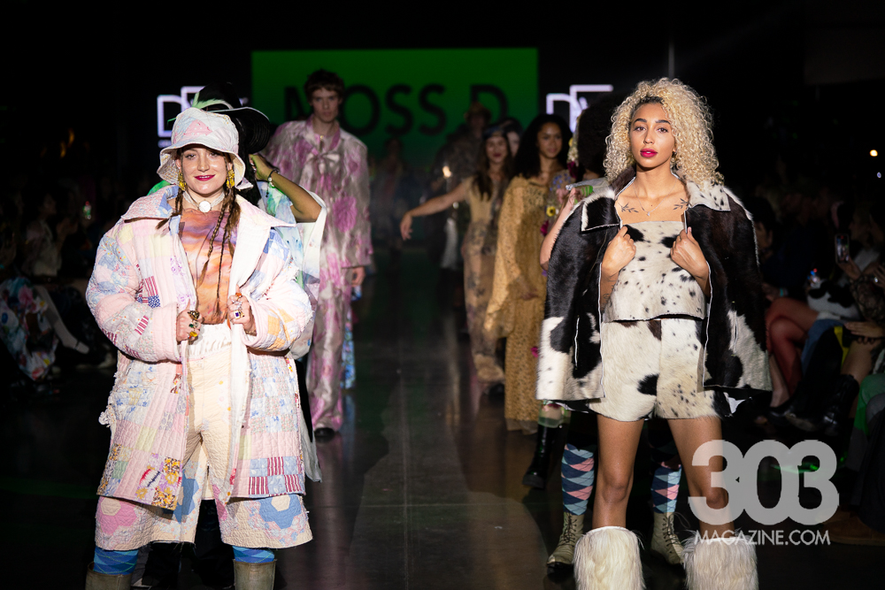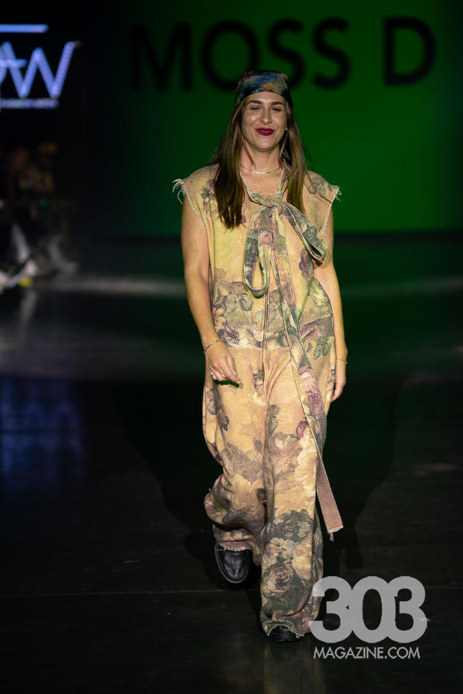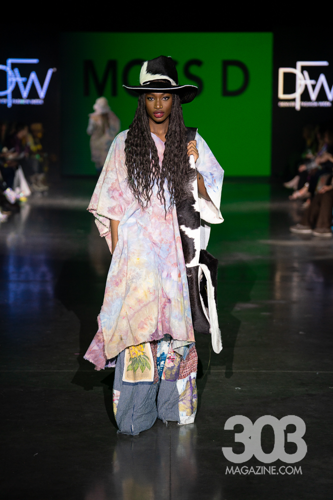 MOSS D designer Marcia Kay Davis was born for a maximalism theme. For her return to the Denver Fashion Week runway, her latest collection did not disappoint. From cow hide to Davis’s trademark florals, the entire collection had a natural and free-flowing feel, emphasized by the looks’ loose silhouette. Overall, the MOSS D collection brought comfort and joy to the runway, with models dancing down the runway and genuine smiles on their faces.