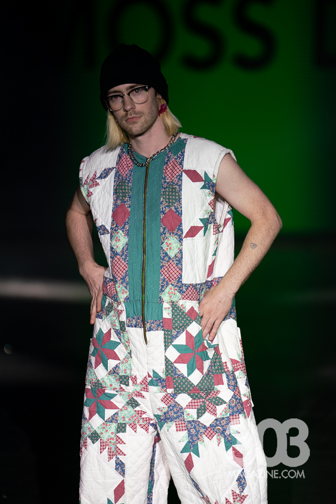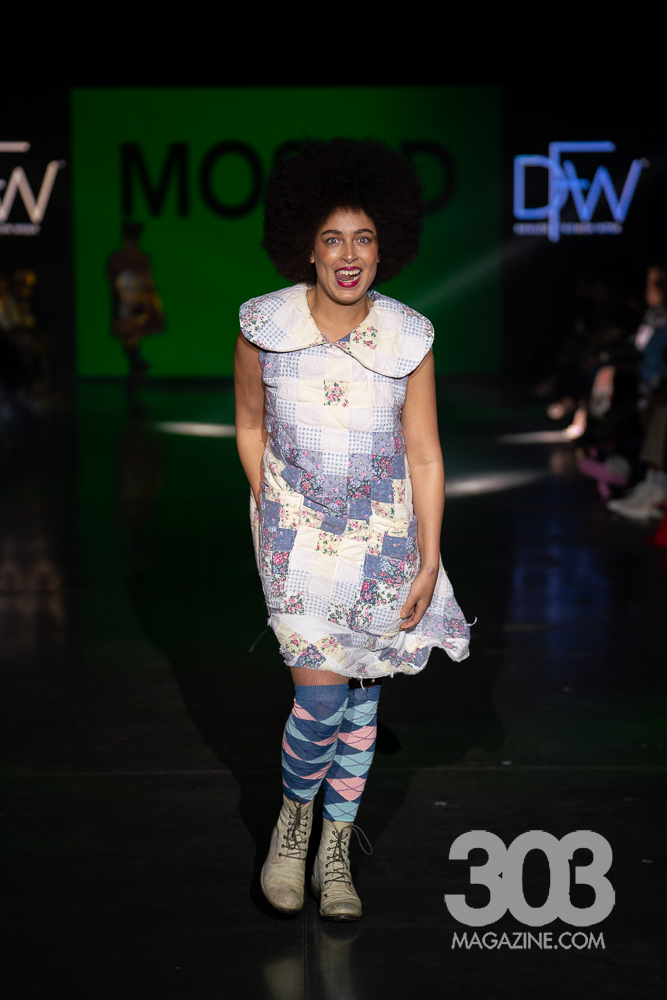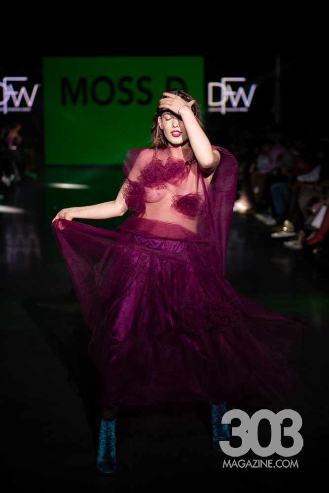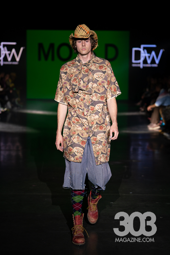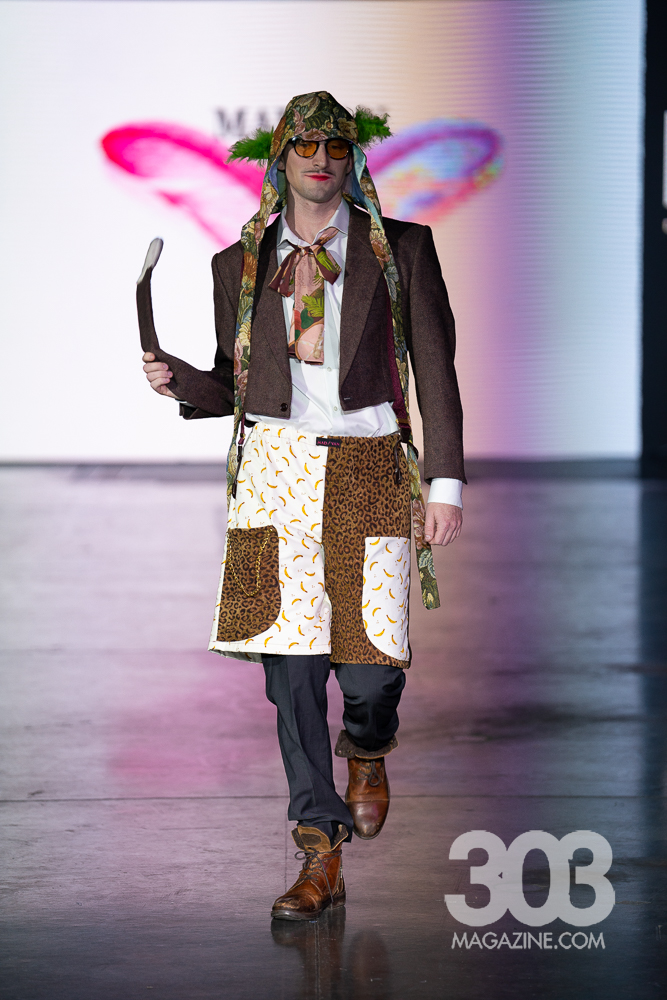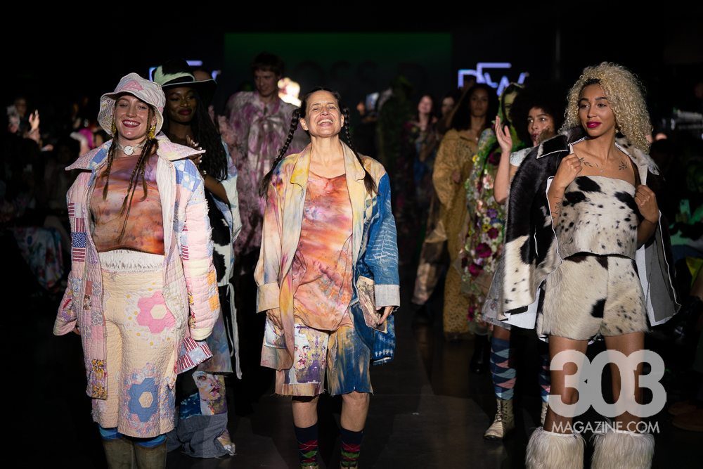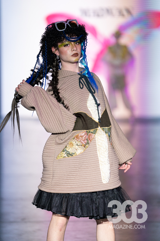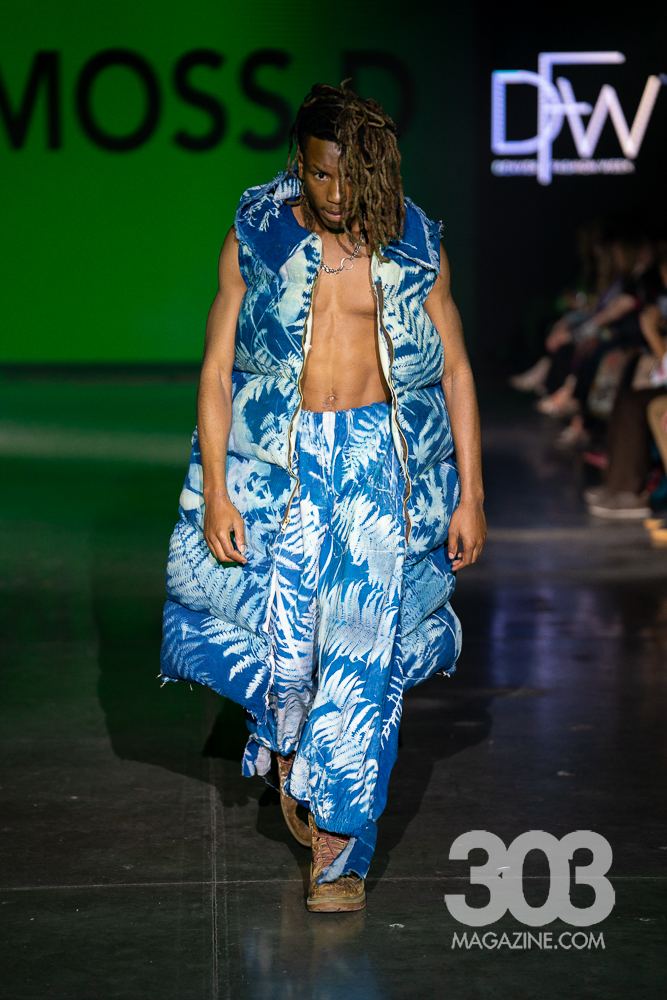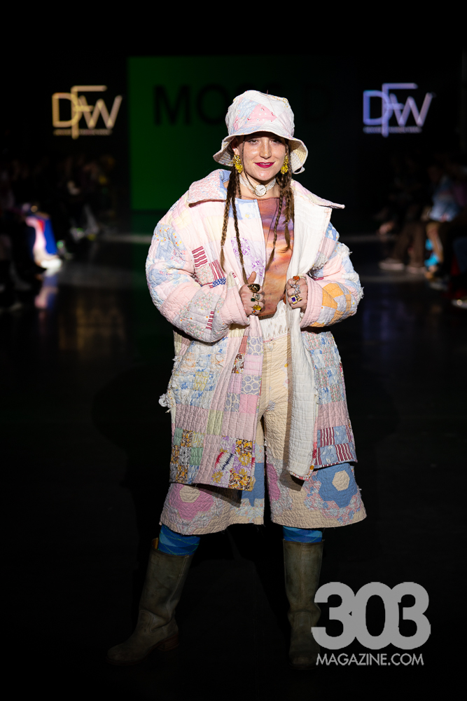 MOSS D designer Marcia Kay Davis was born for a maximalism theme. For her return to the Denver Fashion Week runway, her latest collection did not disappoint. From cow hide to Davis’s trademark florals, the entire collection had a natural and free-flowing feel, emphasized by the looks’ loose silhouette. Overall, the MOSS D collection brought comfort and joy to the runway, with models dancing down the runway and genuine smiles on their faces.