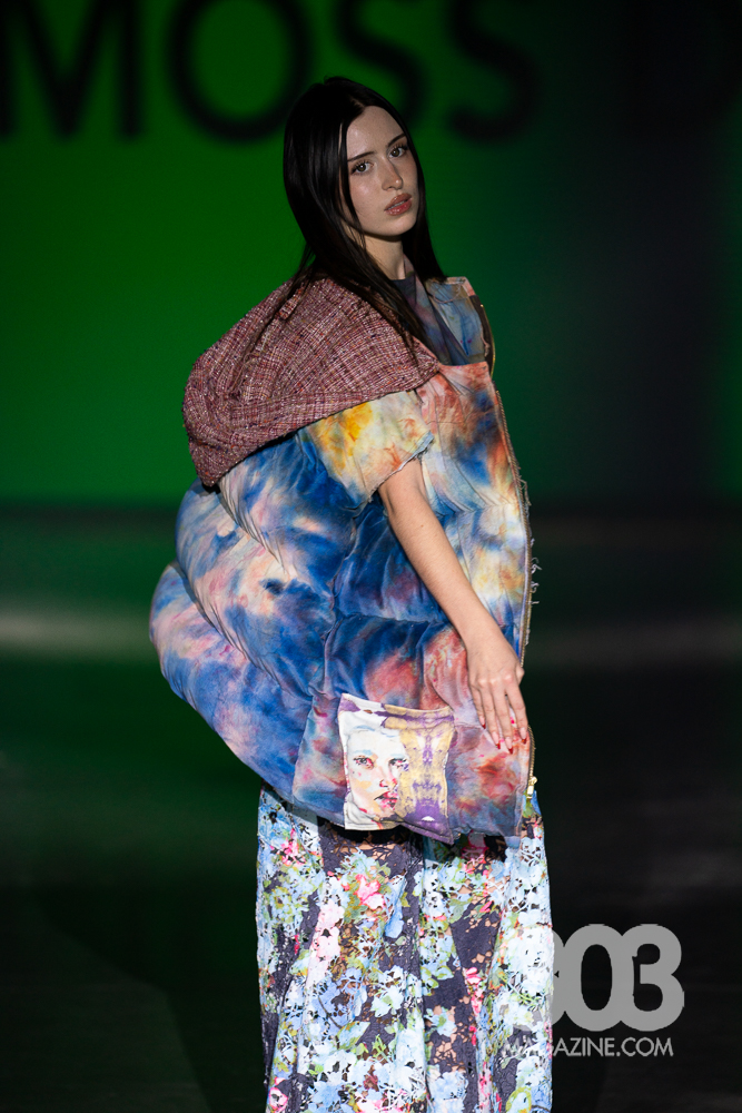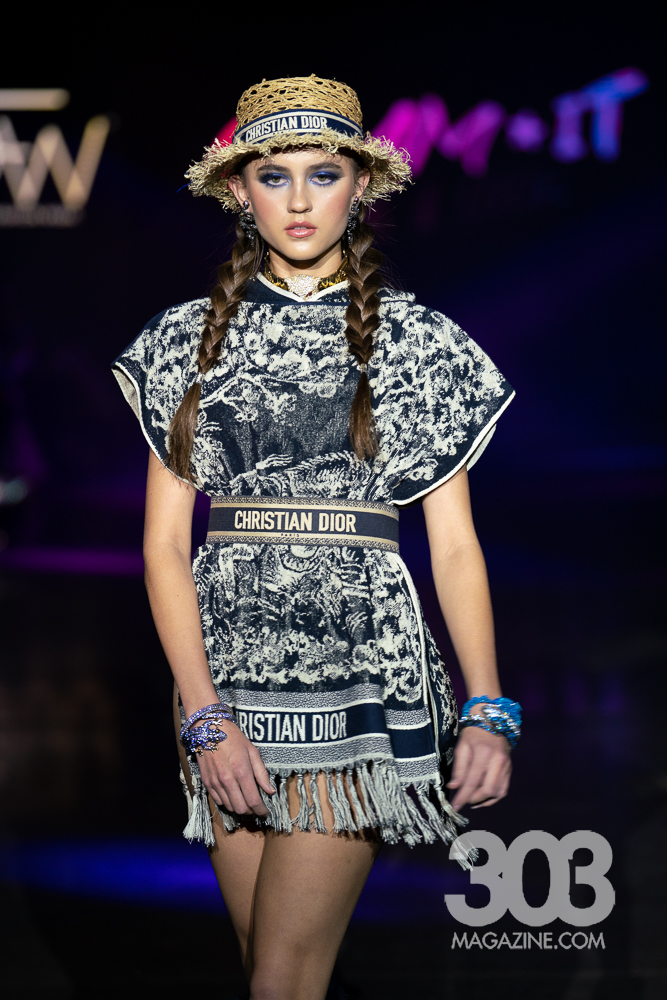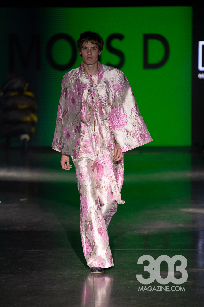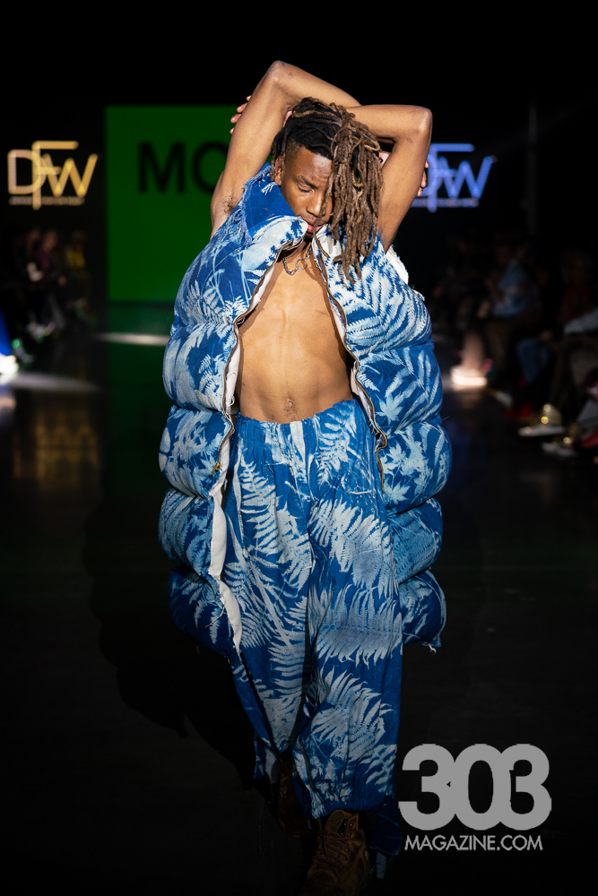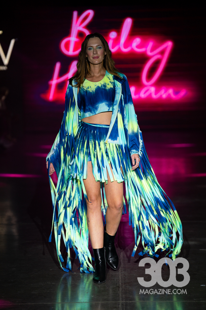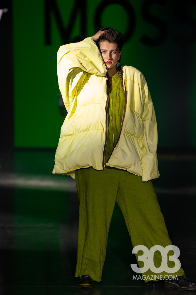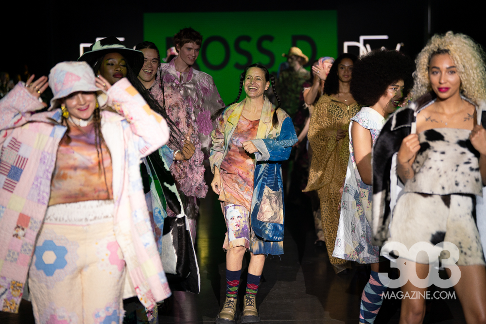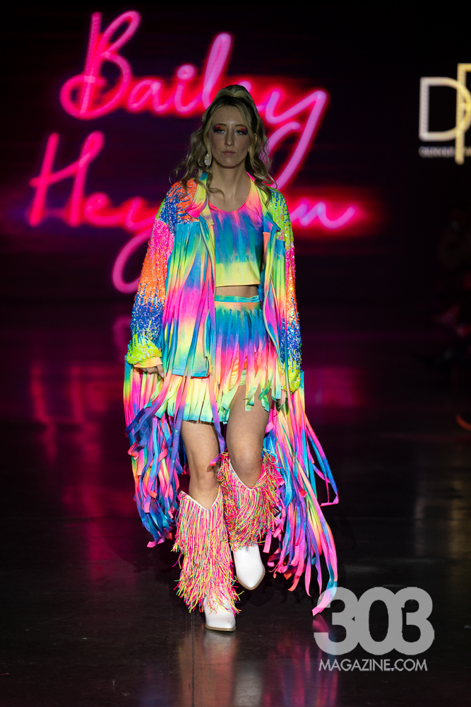 MOSS D designer Marcia Kay Davis was born for a maximalism theme. For her return to the Denver Fashion Week runway, her latest collection did not disappoint. From cow hide to Davis’s trademark florals, the entire collection had a natural and free-flowing feel, emphasized by the looks’ loose silhouette. Overall, the MOSS D collection brought comfort and joy to the runway, with models dancing down the runway and genuine smiles on their faces.