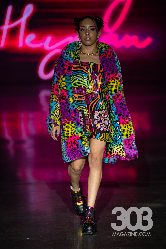 Heyman brought a fun, colorful and nostalgic collection to the DFW runway. The collection included references to ’90s kids’ favorites: including authentic Furby fur, a Beanie Babies-themed jacket and a full Lisa Frank-inspired ensemble (made with the iconic rainbow leopard print, of course). This playful collection reflects Heyman’s attitude toward designing: nothing for sale, everything for joy.