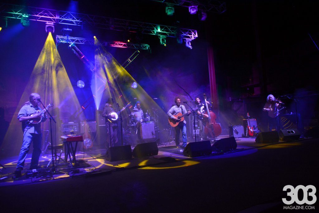 This steamin’ night in August was IT for Denver’s bluegrass junkies. Three of the biggest names in the genre for over the past twenty-some years joined forces for a three-set plus mega-encore evening that included collaborations galore. Despite the near 100-degree day and the music kicking off before sundown, Railroad Earth, Yonder Mountain String Band and Leftover Salmon proved to their adoring crowd that the good times aren’t done yet. The evening’s peak was, of course, the conglomerative encore that saw all of Leftover Salmon plus Tim Carbone, John Skehan, Todd Sheaffer, Nick Piccininni, David Johnston and Adam Aijala performing “For What It’s Worth,” “I Know You Rider,” “Reuben’s Train” and “Up on Cripple Creek.”