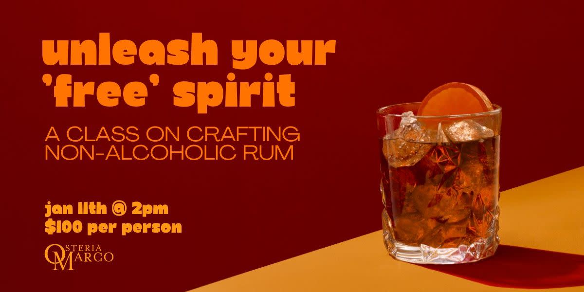 The Lowdown: Osteria Marco is supporting all of the Denverites going through Dry January who might be craving some of the flavors from your favorite cocktails. They will teach guests how to make their own free-spirited Rum during an hour-long class. Snacks are included while crafting the Rum, and you will get to take home a bottle for yourself, along with a recipe book to make free-spirited cocktails.