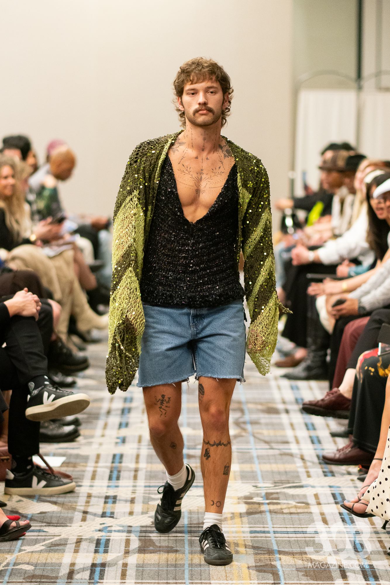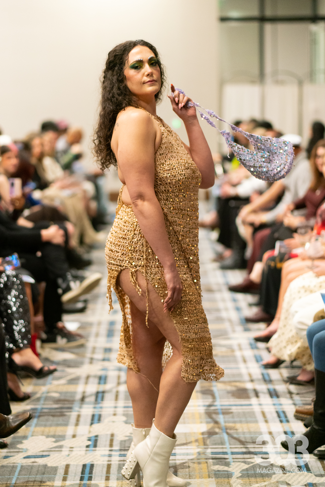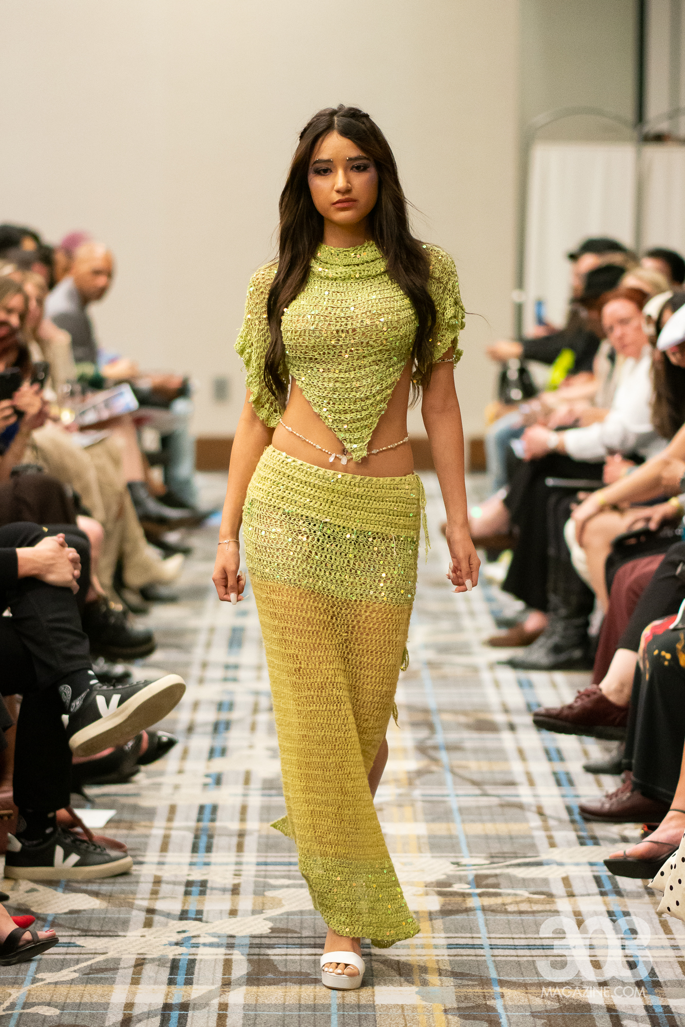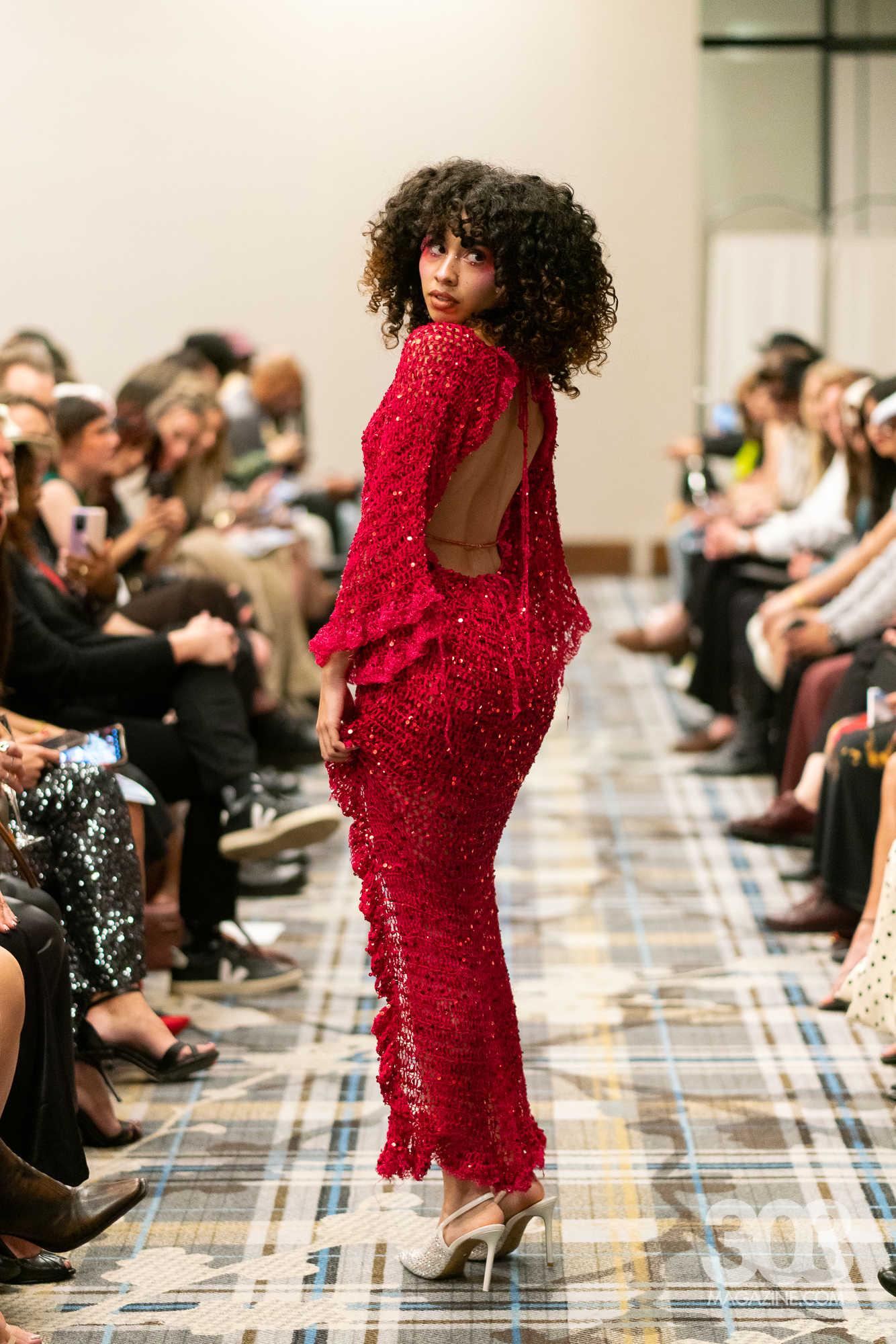 Make You Sparkle aka Kay Trejo had custom knit and sparkling pieces float beautifully down the runway. Made up of sheer fabrics, bright colors and, of course, sparkle, these designs were made for all to feel confident and truly caught everyone’s attention — perfect for this upcoming spring/summer.