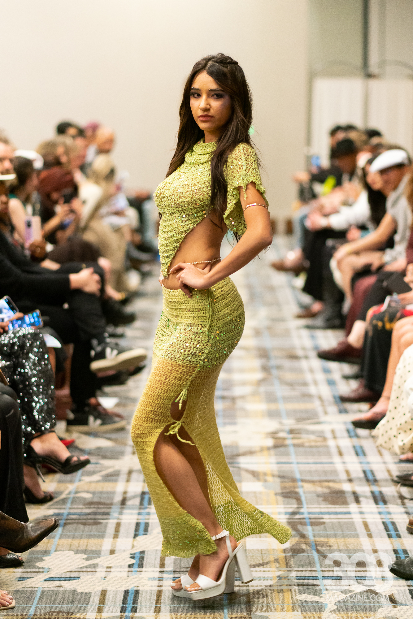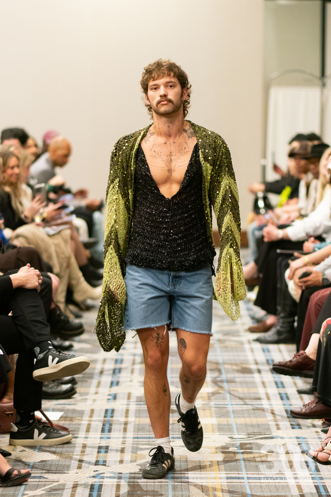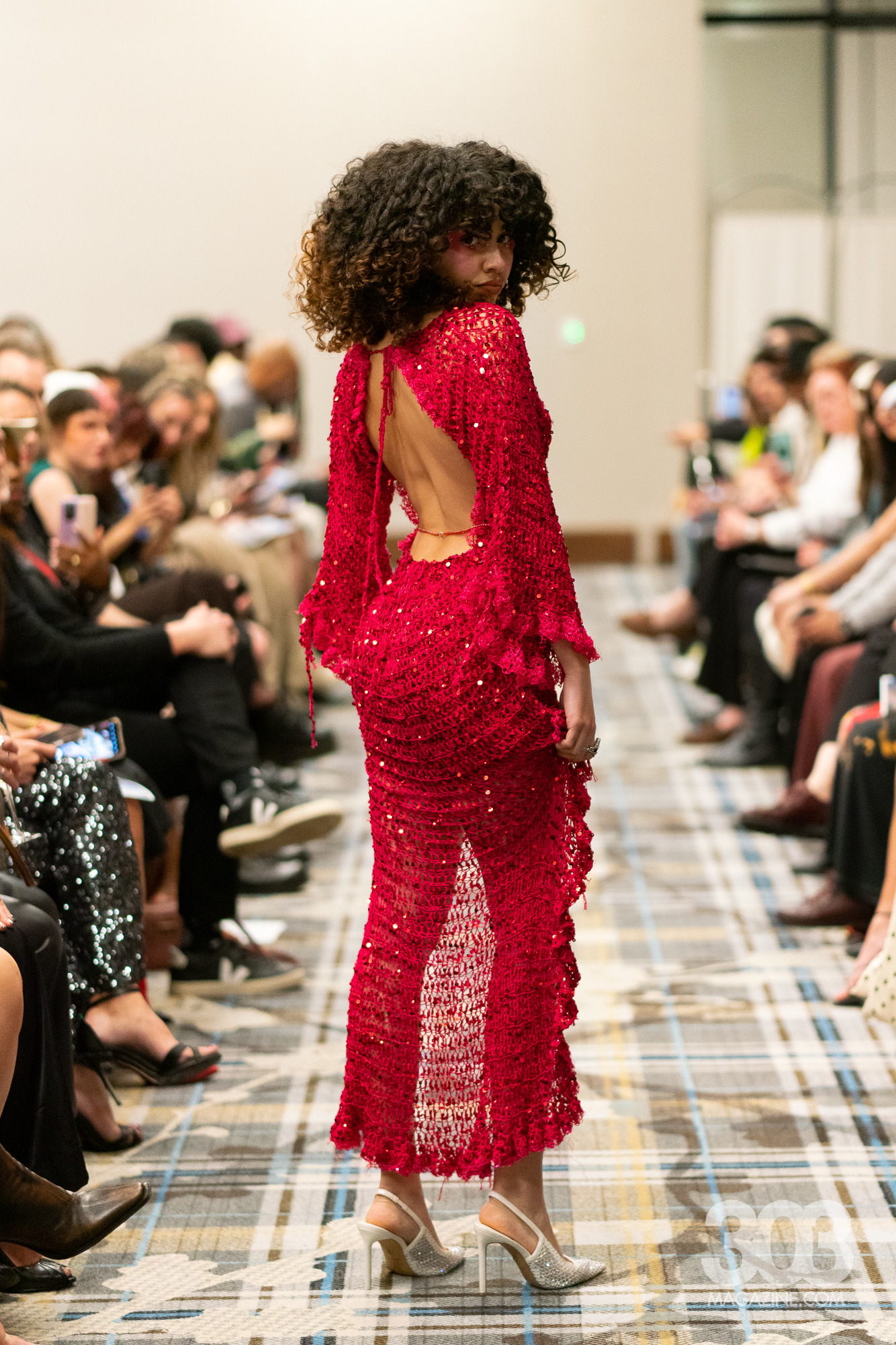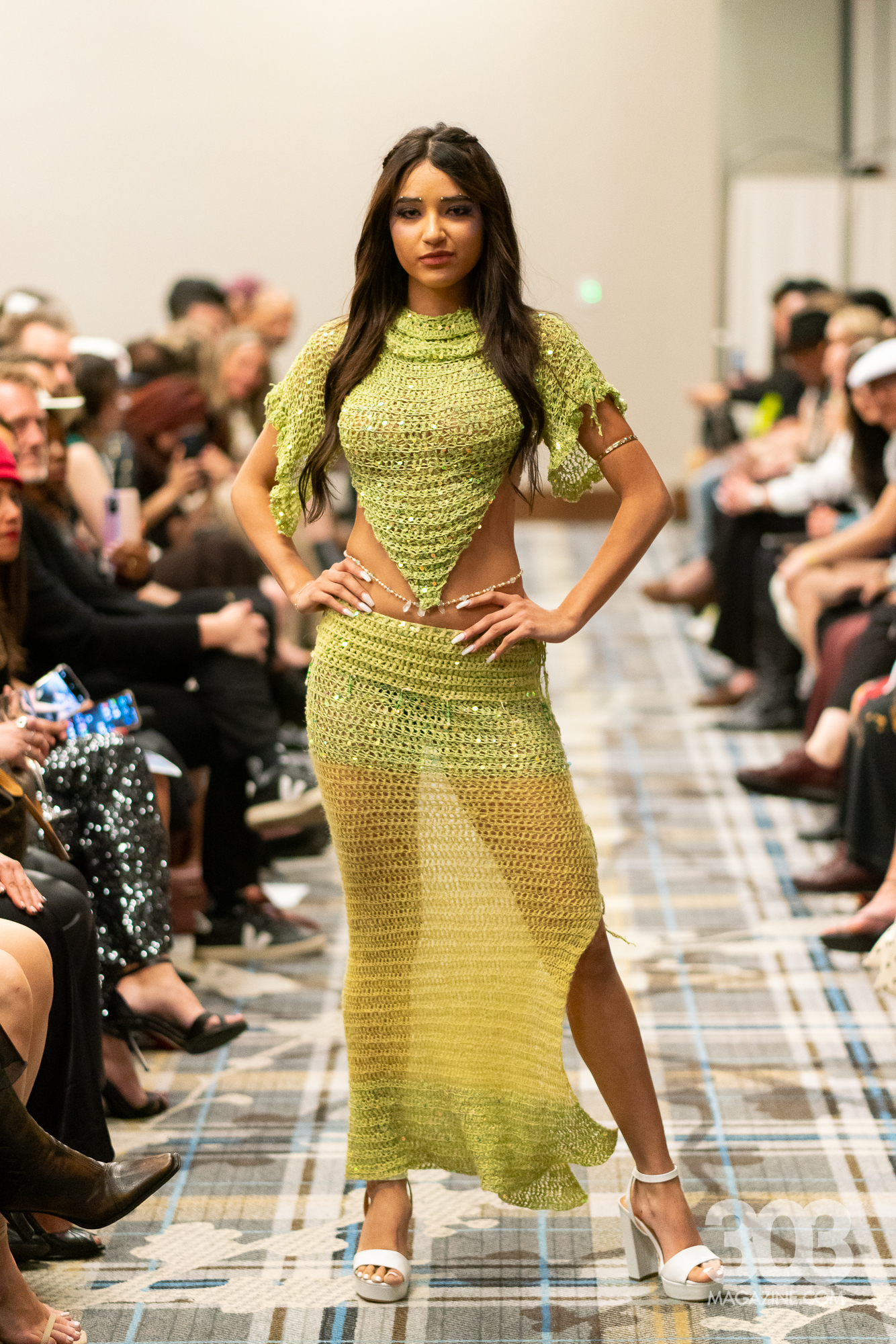 Make You Sparkle aka Kay Trejo had custom knit and sparkling pieces float beautifully down the runway. Made up of sheer fabrics, bright colors and, of course, sparkle, these designs were made for all to feel confident and truly caught everyone’s attention — perfect for this upcoming spring/summer.