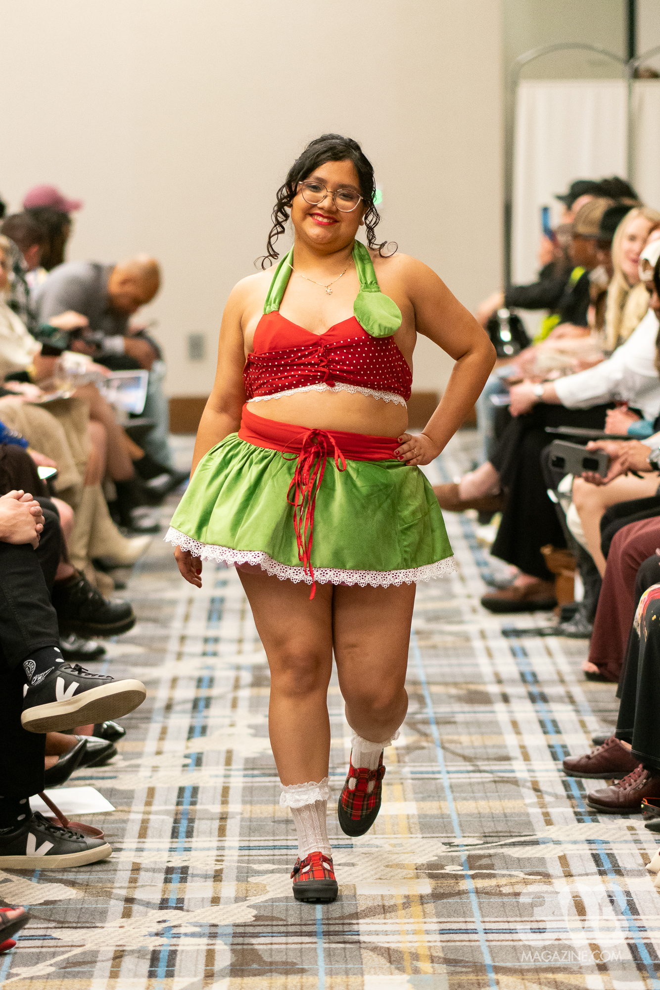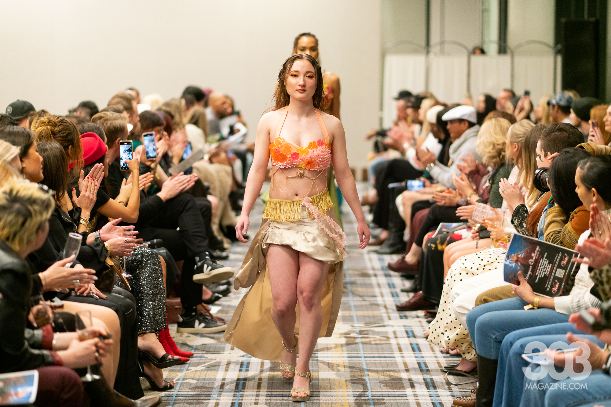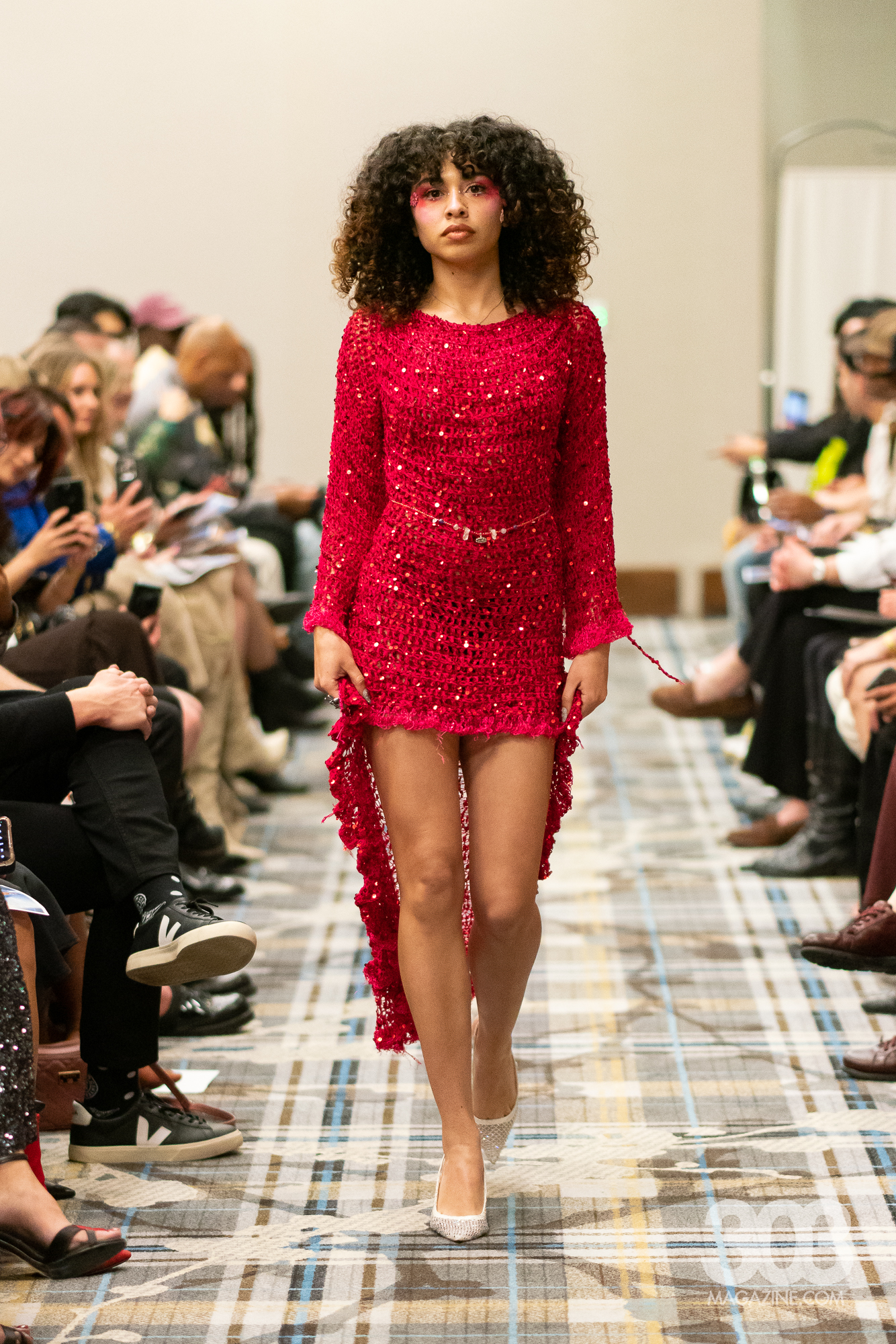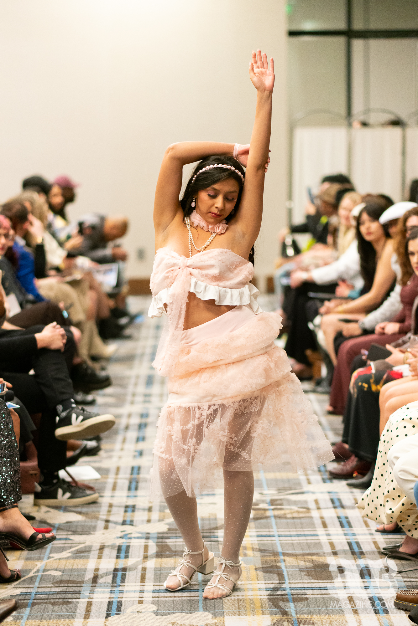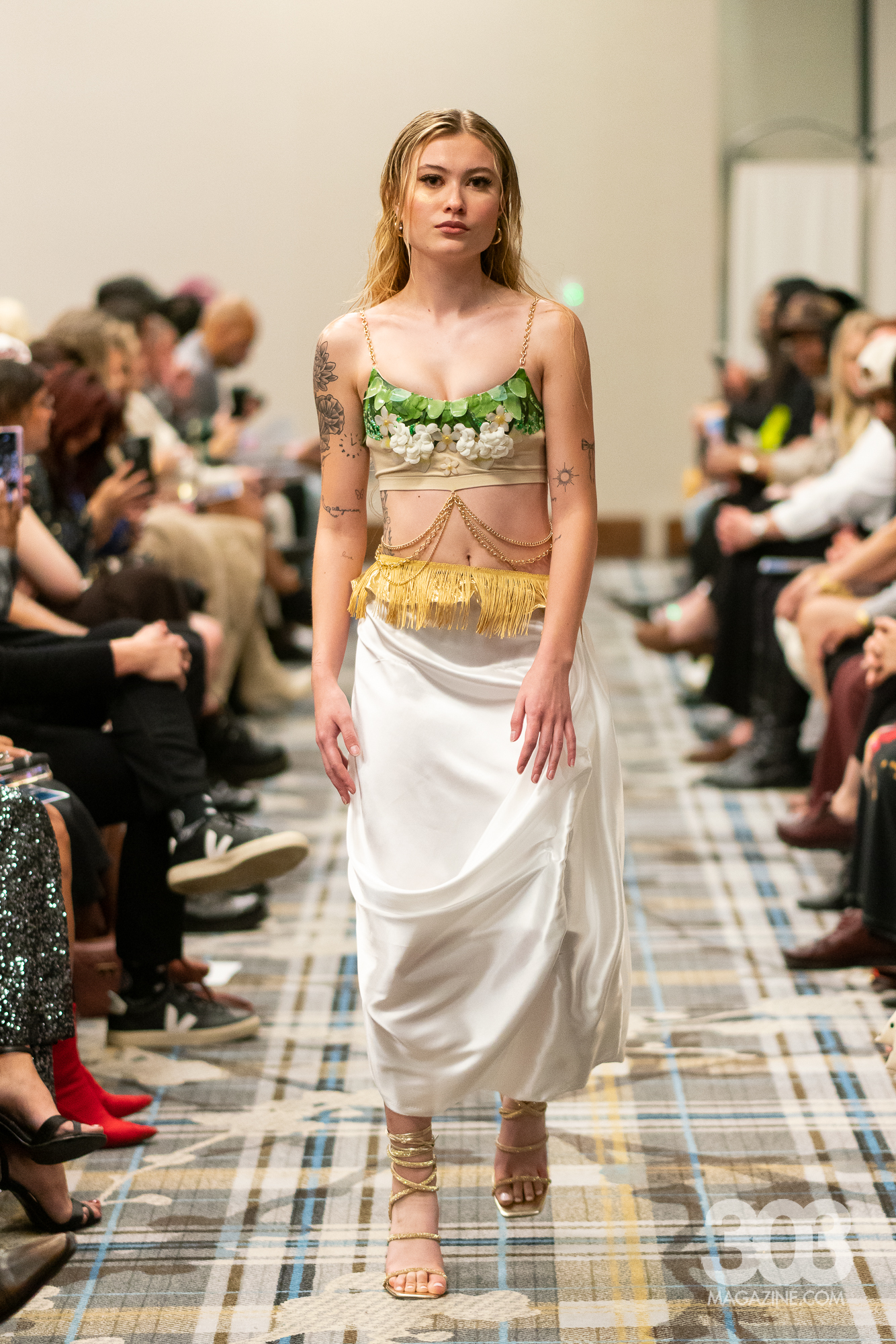 Make You Sparkle aka Kay Trejo had custom knit and sparkling pieces float beautifully down the runway. Made up of sheer fabrics, bright colors and, of course, sparkle, these designs were made for all to feel confident and truly caught everyone’s attention — perfect for this upcoming spring/summer.